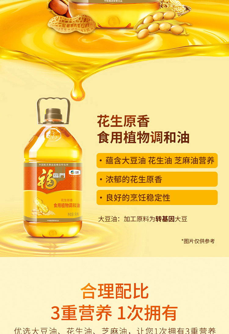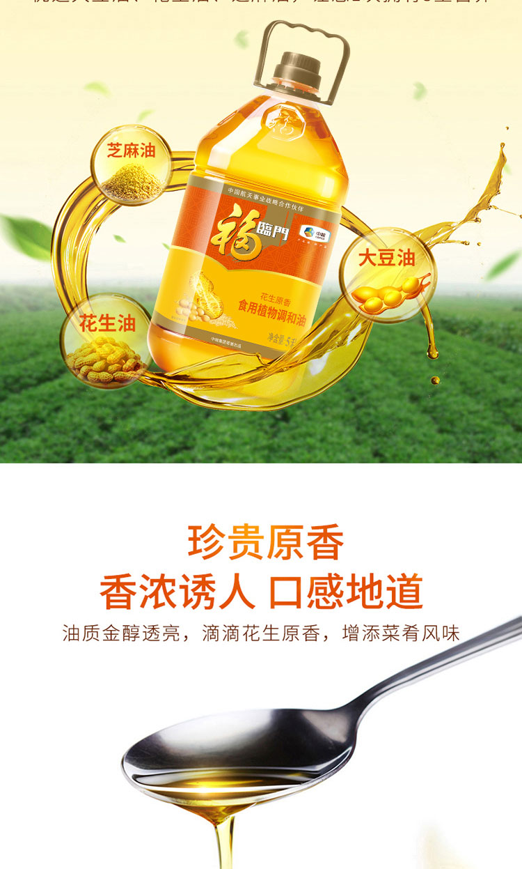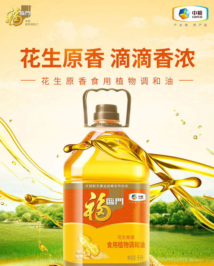福临门花生原香食用植物调和油5L 桶 白色