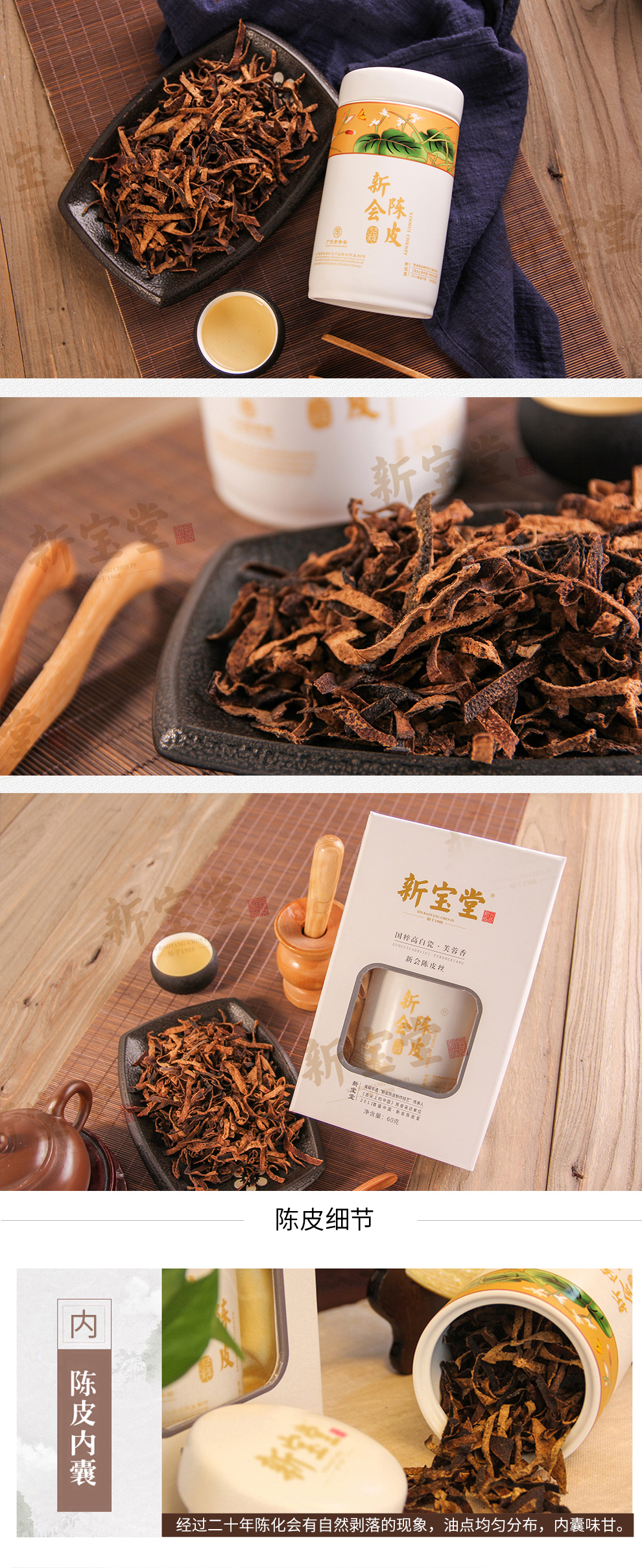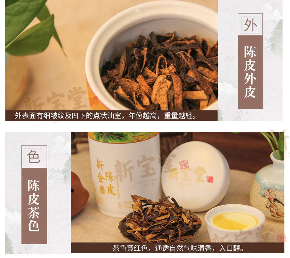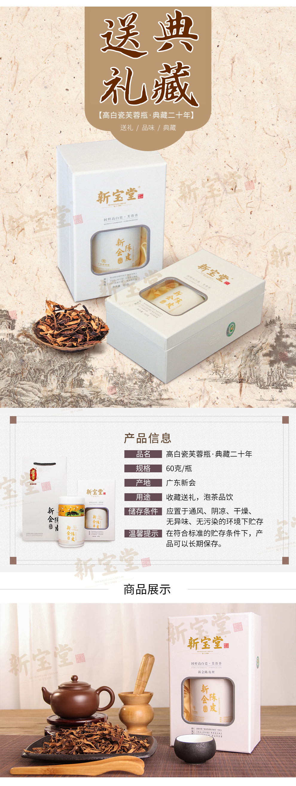新宝堂二十年新会陈皮高白瓷芙蓉瓶陈皮干送礼礼盒60克泡茶 无色
