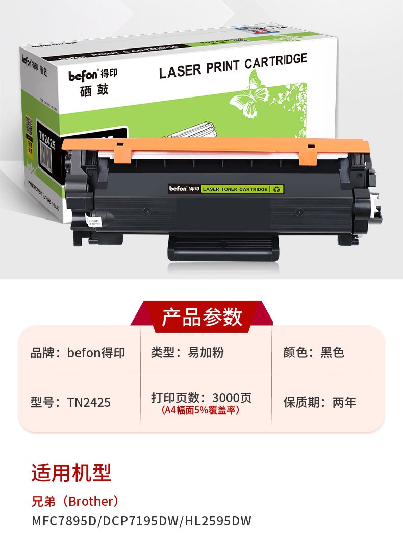 得印 TN2425粉盒大容量易加粉 墨盒 单位:支 黑色