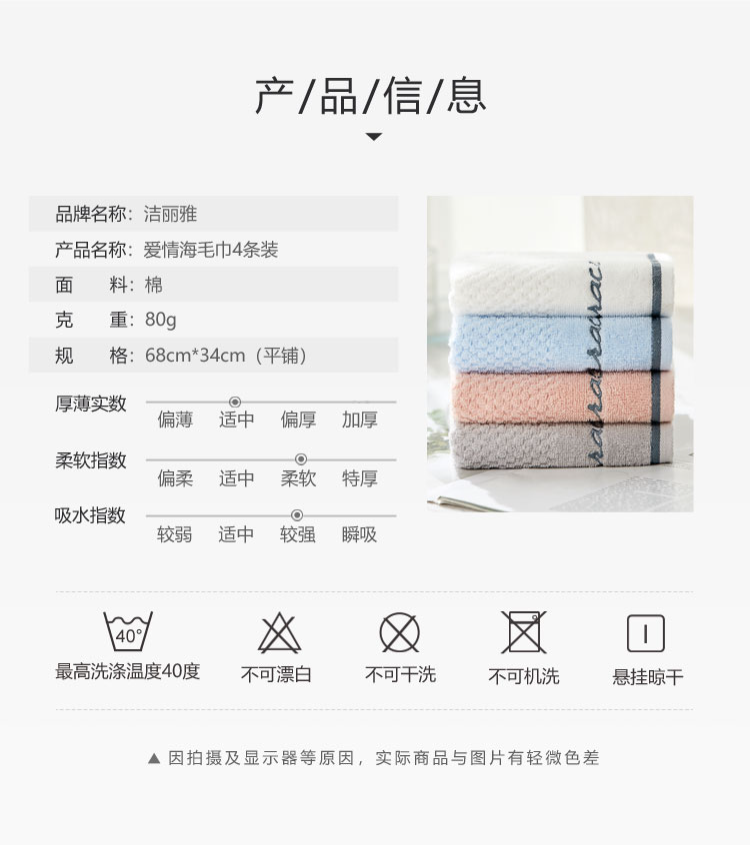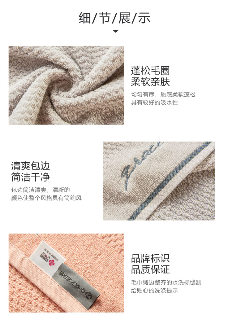 洁丽雅(Grace) 7253A 4条装(颜色混发) 纯棉绣花洗脸巾 混色(单位:组)