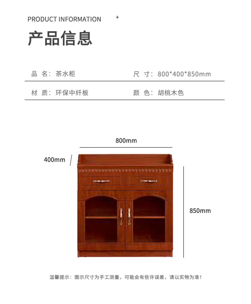 企诺 2门落地柜矮柜油漆茶水柜LM0801 胡桃色