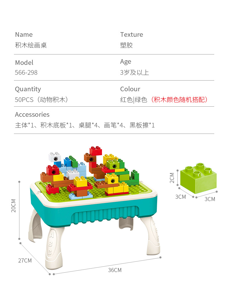 婴侍卫 多功能双面积木绘画桌 566-298 红/绿 颜色随机