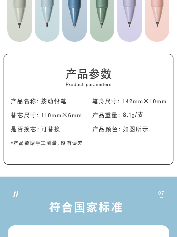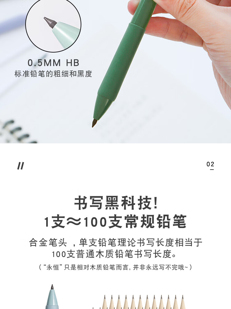 三年二班 单只装按动式永恒铅笔 学生专用不易断铅免削活动铅笔高颜值不脏手自动笔 支 浅豆绿