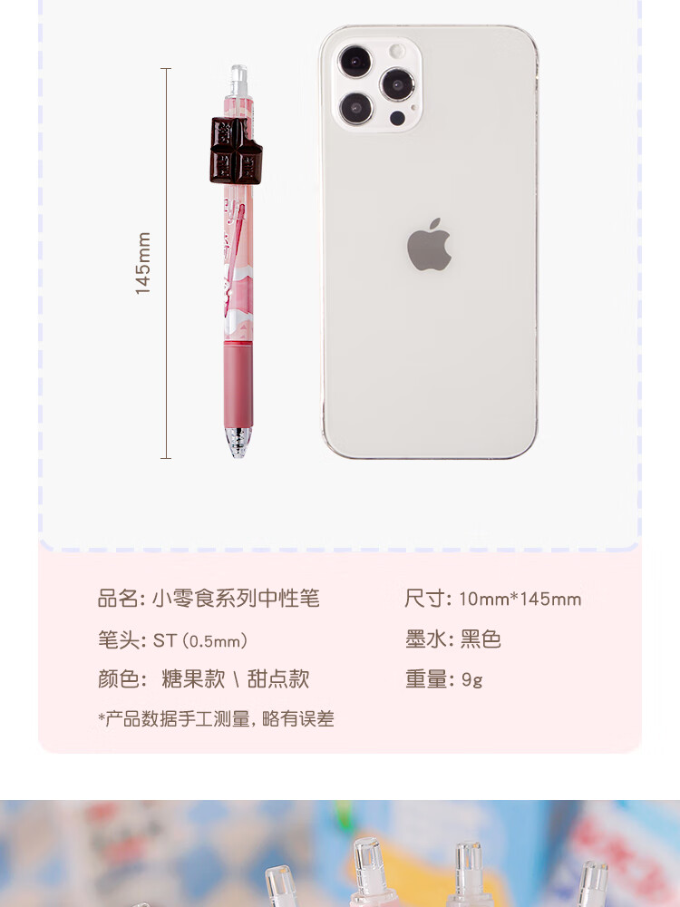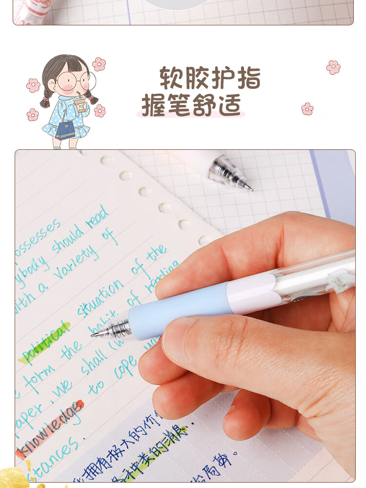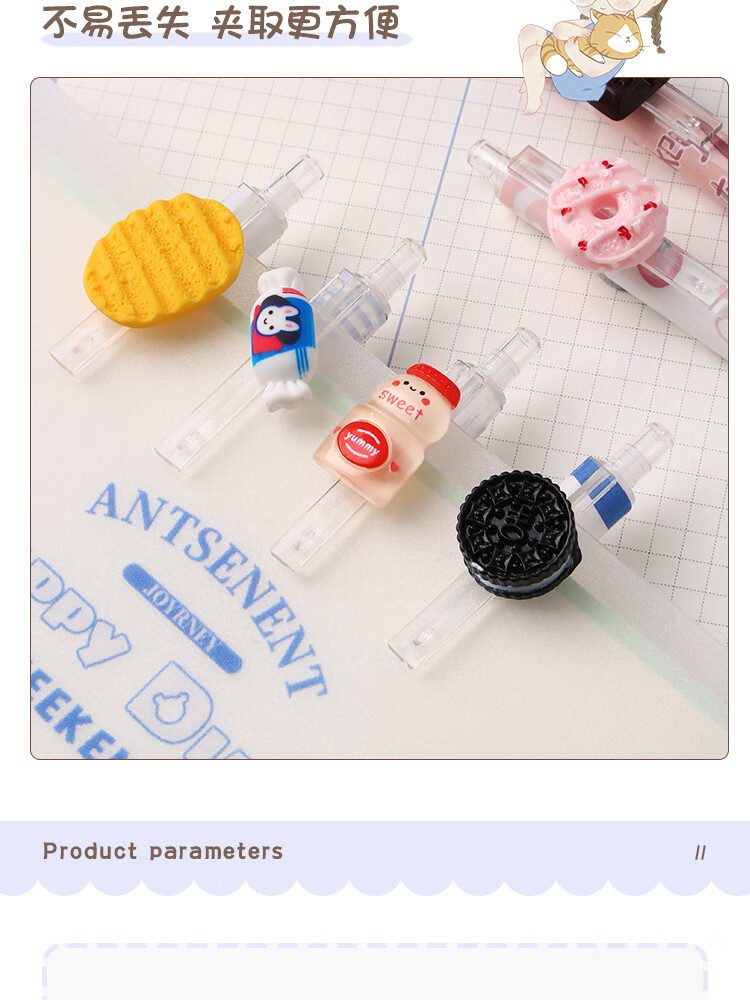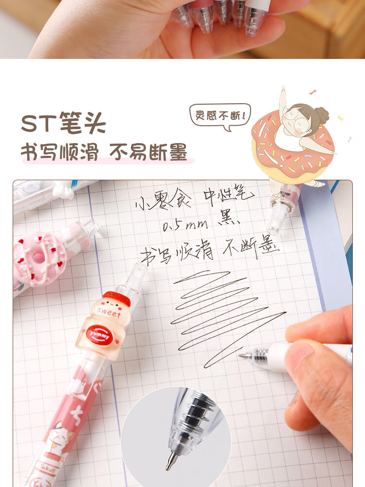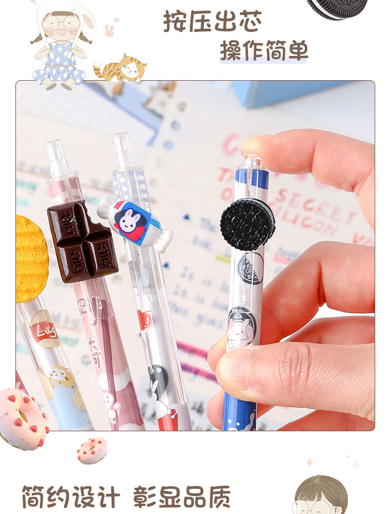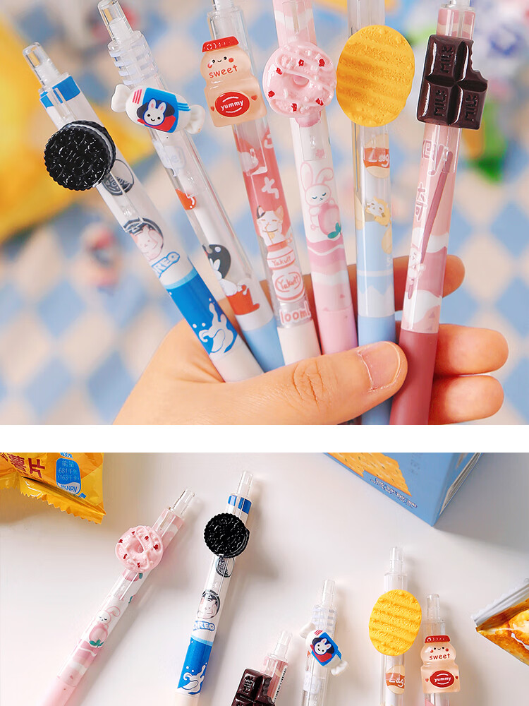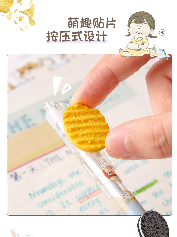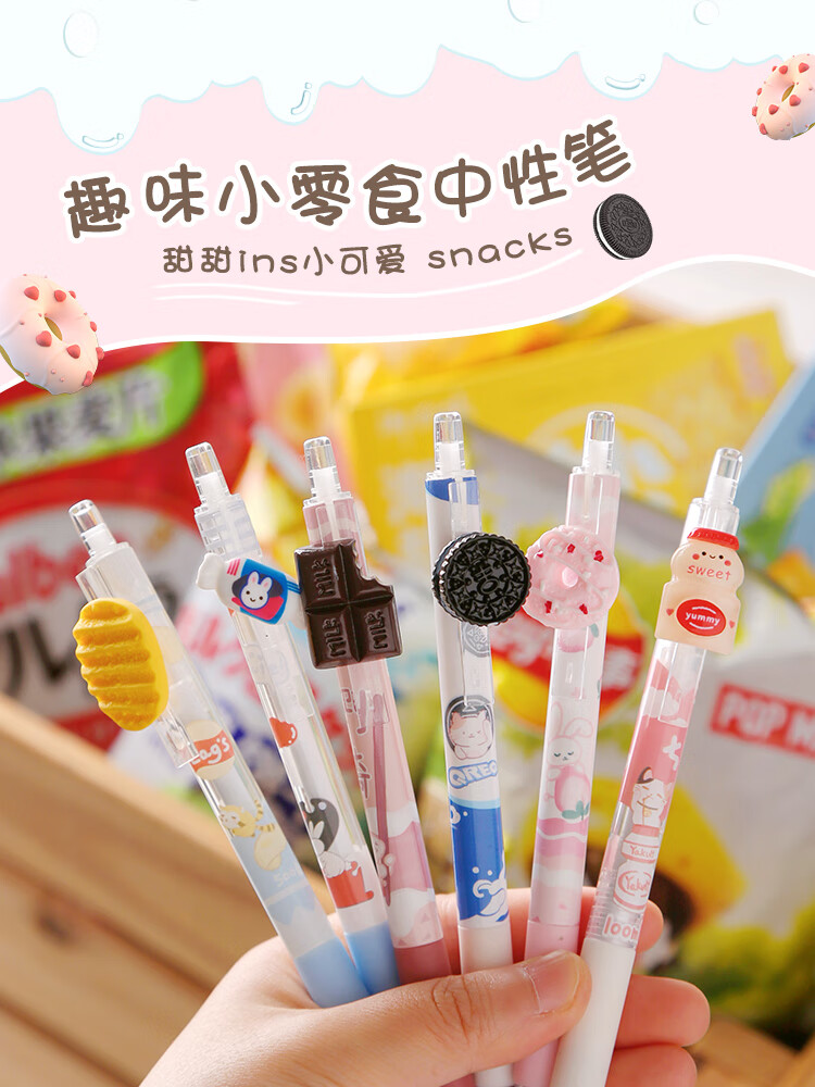 三年二班 6支装ST笔头可爱小零食系列按动中性笔 学生用刷题考试黑色水性笔速干顺滑高颜值黑笔 黑色