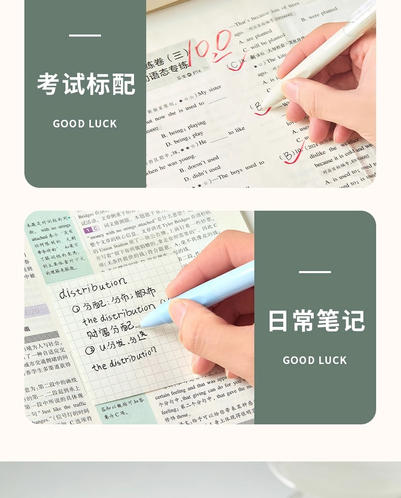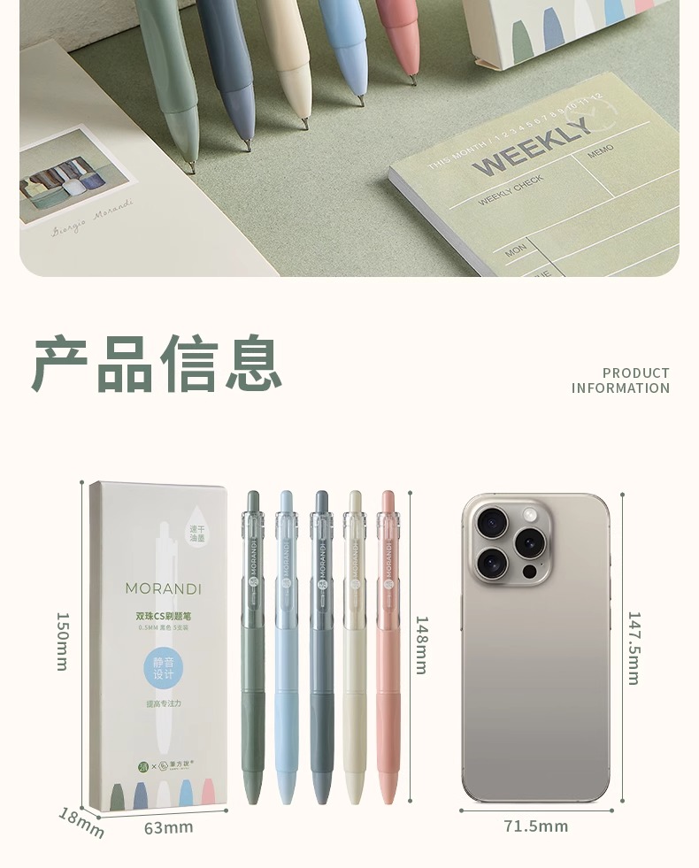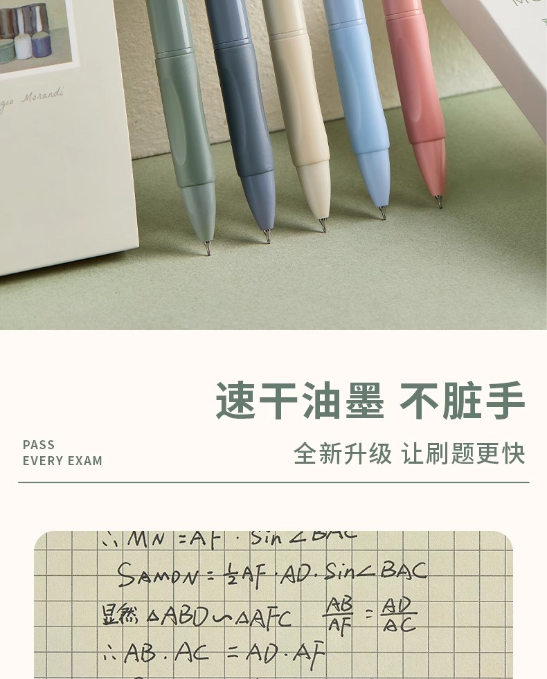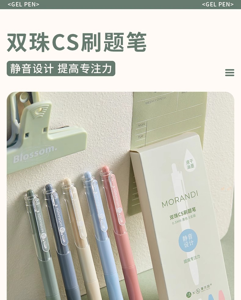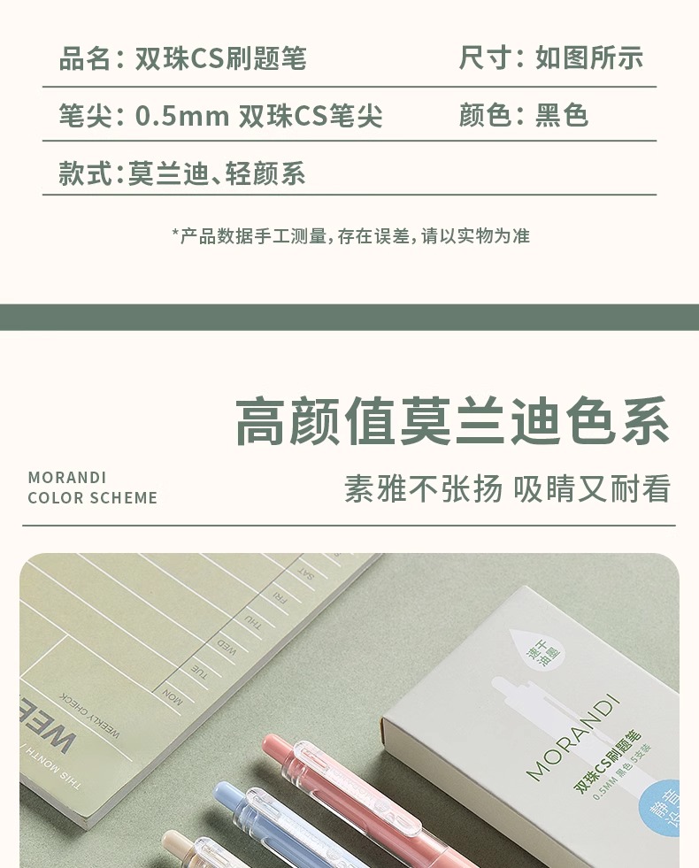 三年二班 【1秒速干/静音设计】双珠CS尖刷题笔 EGP00144 5支装 莫兰迪色(单位:盒)
