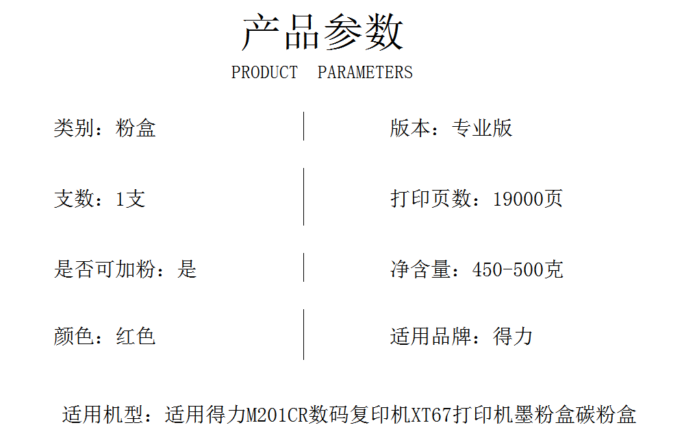 高端T-XT67Me红色粉盒大容量专业版适用得力M201CR数码复印机XT67打印机墨粉盒碳粉盒 红色