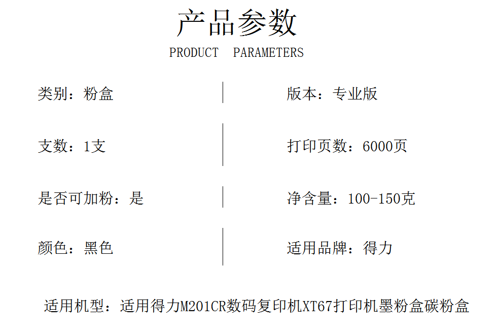 高端T-XT67Ke黑色粉盒小容量专业版适用得力M201CR数码复印机XT67打印机墨粉盒碳粉盒 黑色