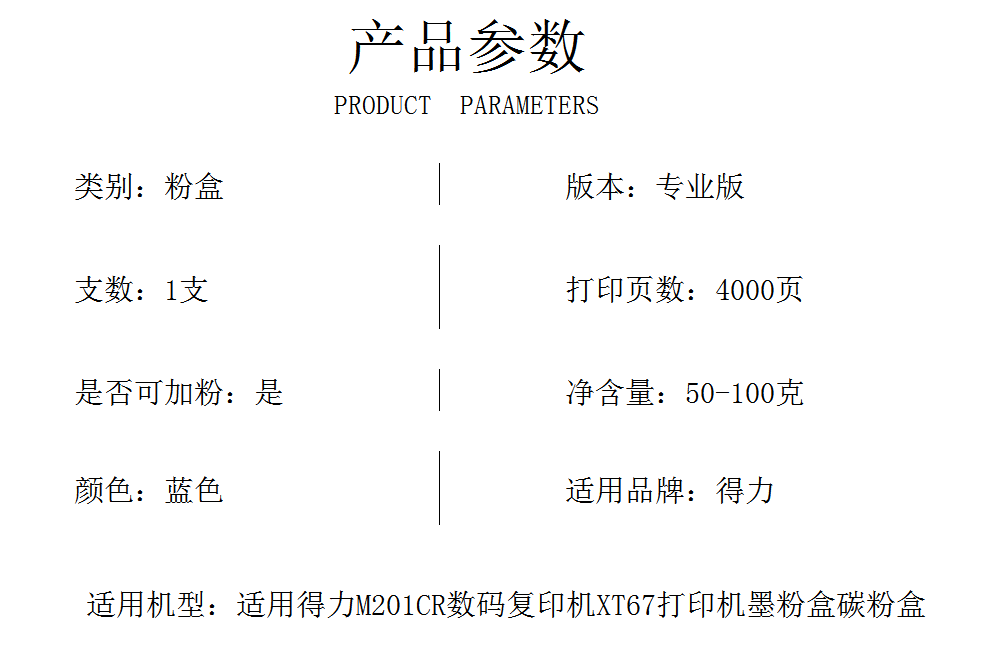 高端T-XT67Ce蓝色粉盒小容量专业版适用得力M201CR数码复印机XT67打印机墨粉盒碳粉盒 蓝色