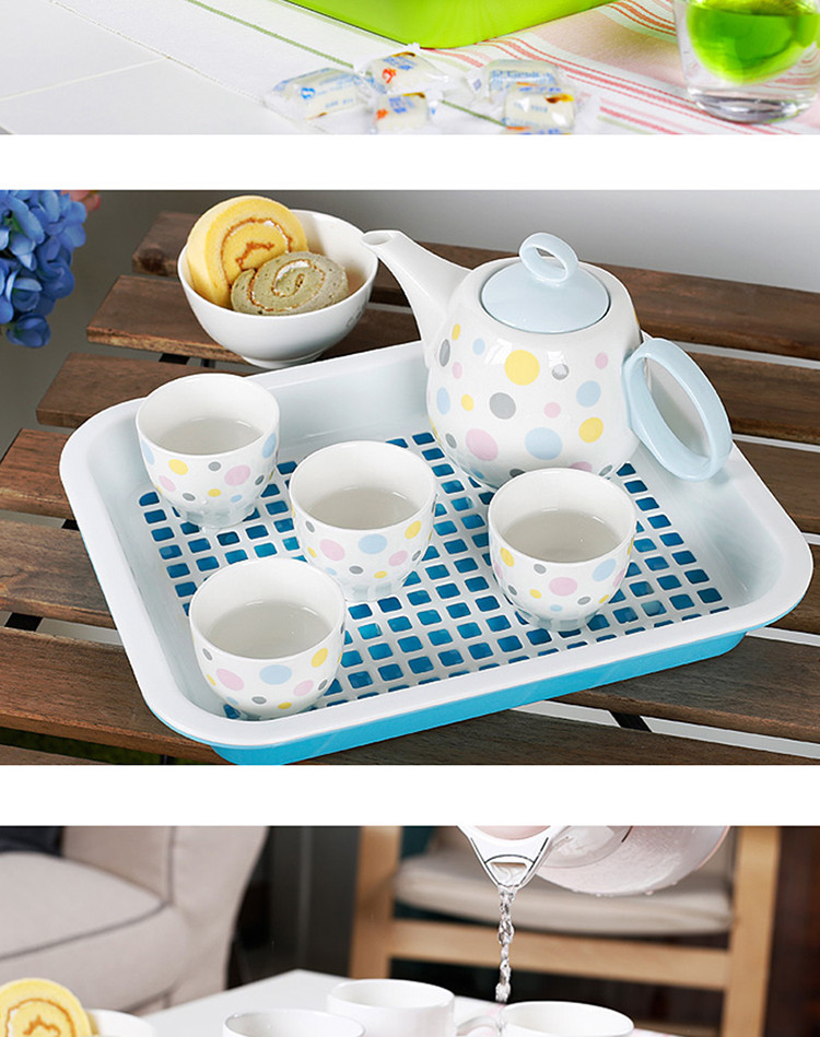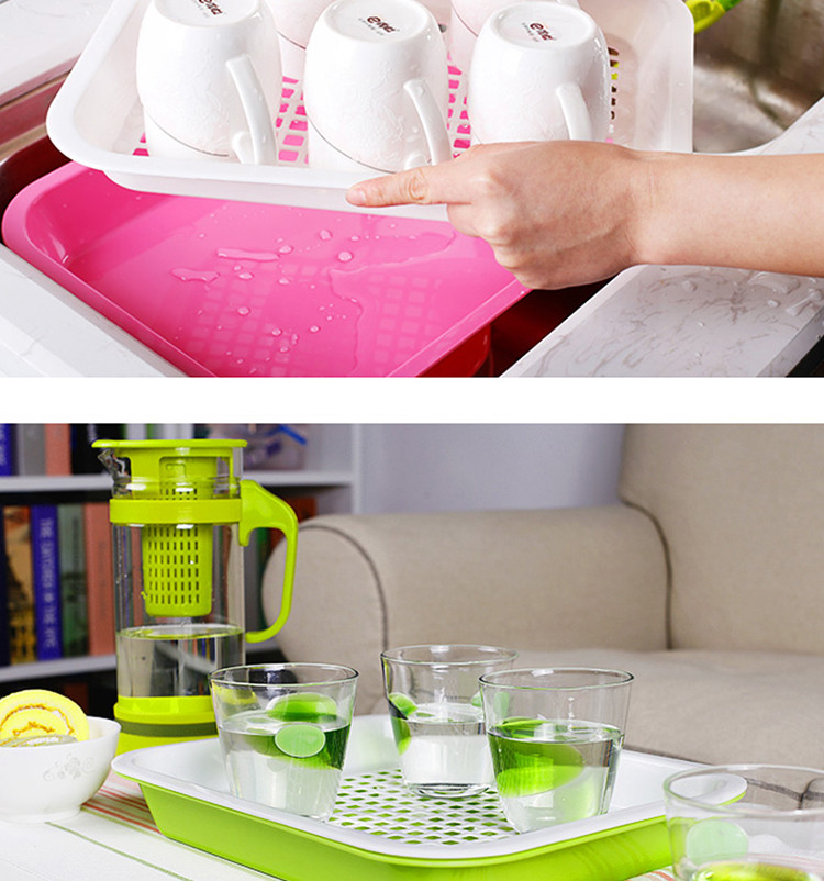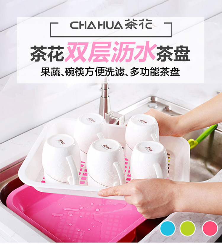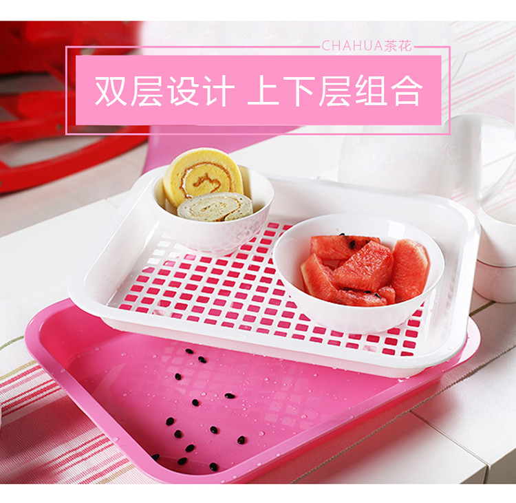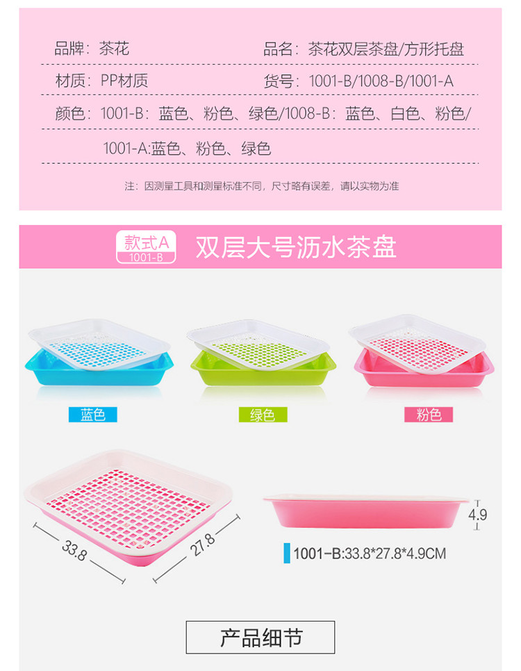茶花1001-B双层茶盘1001-B 蓝/绿/粉
