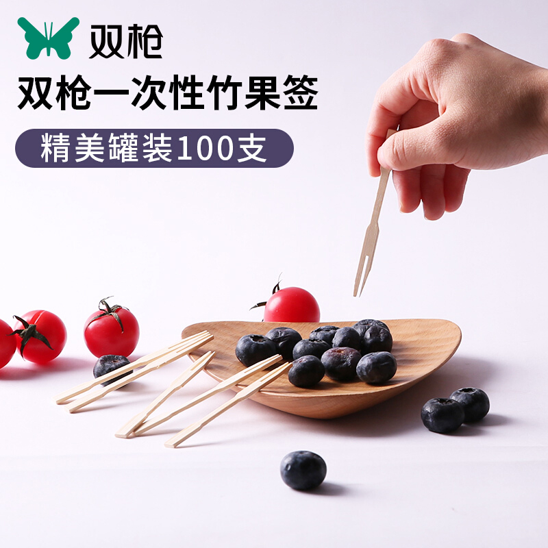 双枪水果叉竹果叉*4罐 400支 GC1210/套 象牙色