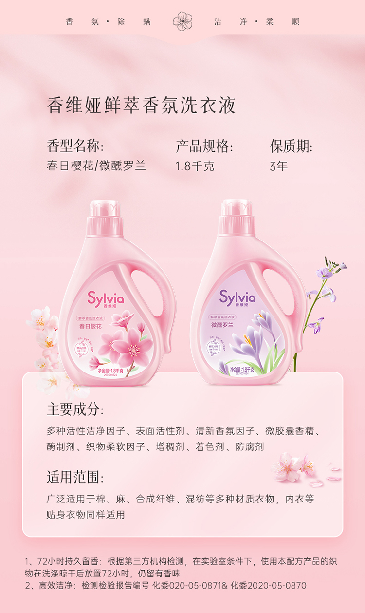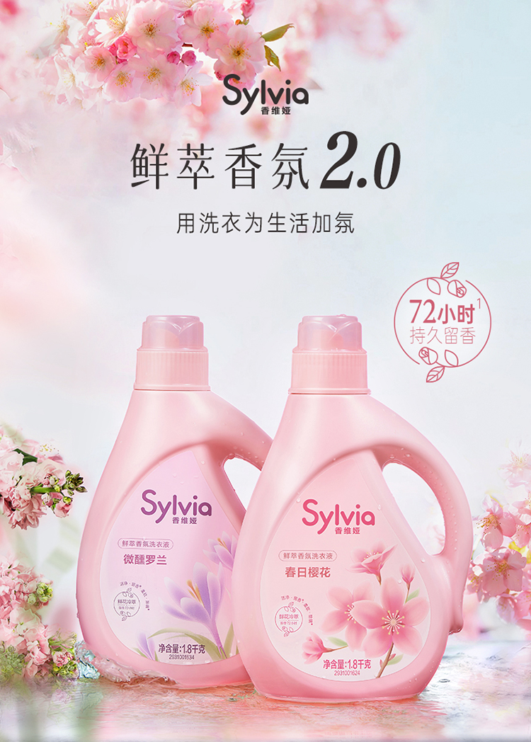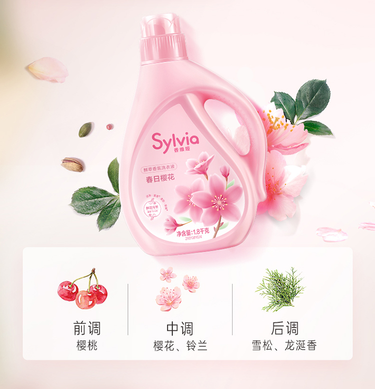 立白Sylvia香维娅鲜萃香氛洗衣液1.8kg(春日樱花) 6920174759549 白色