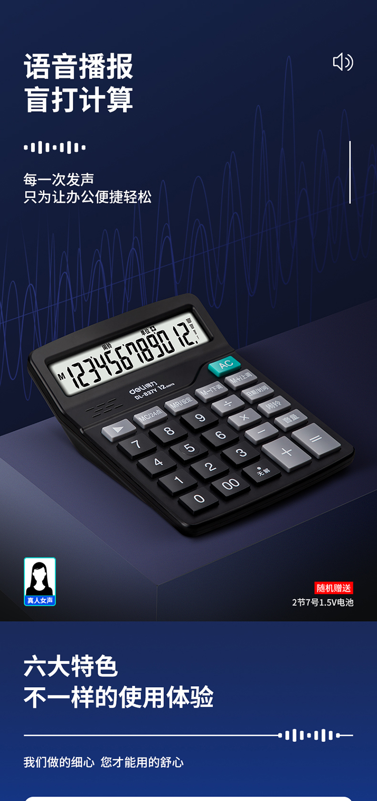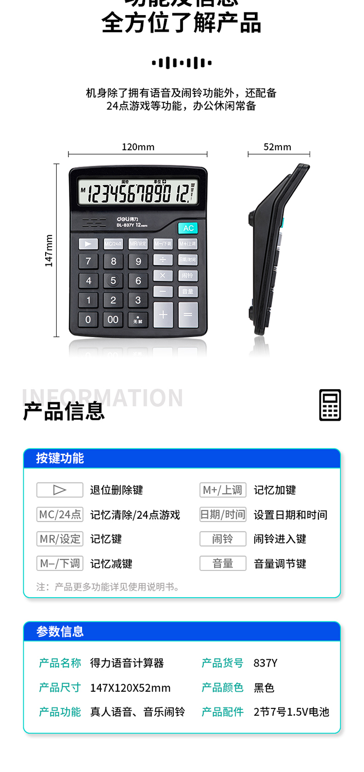 得力计算器(837Y)带语音 黑色