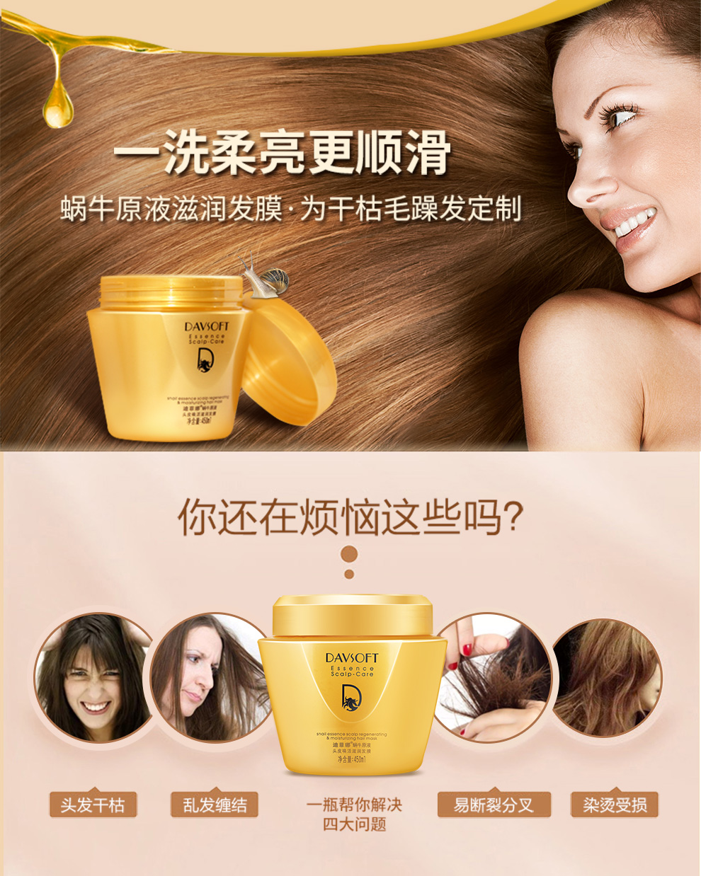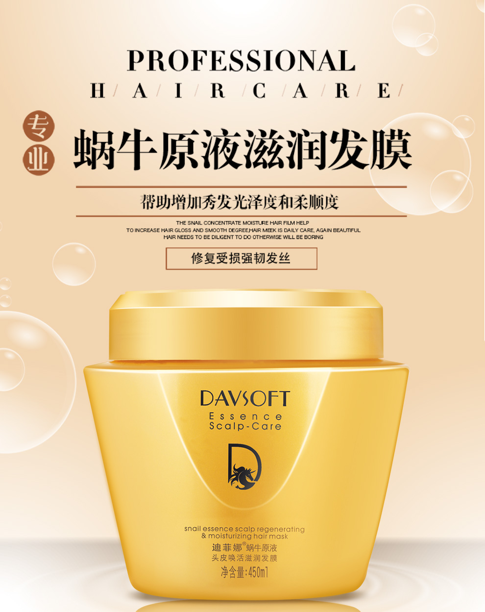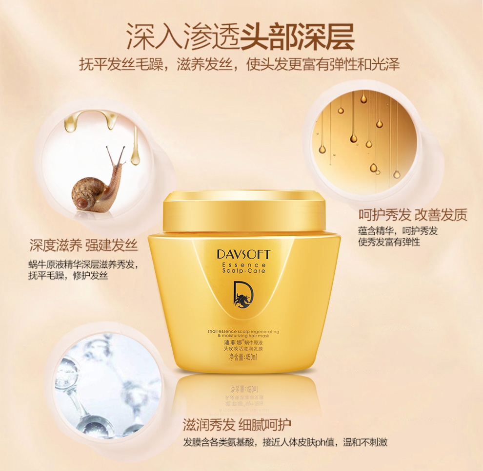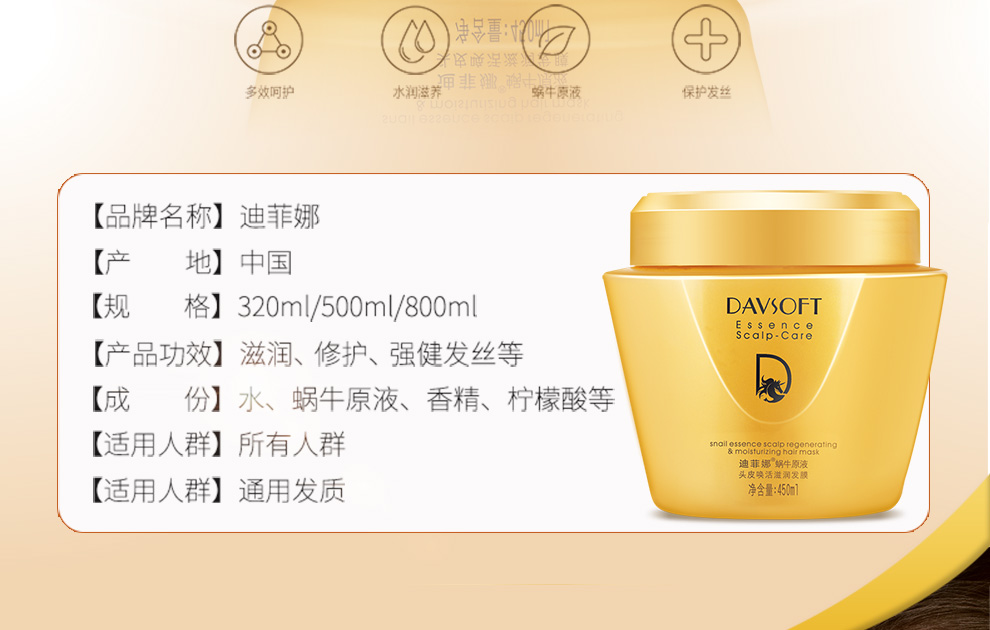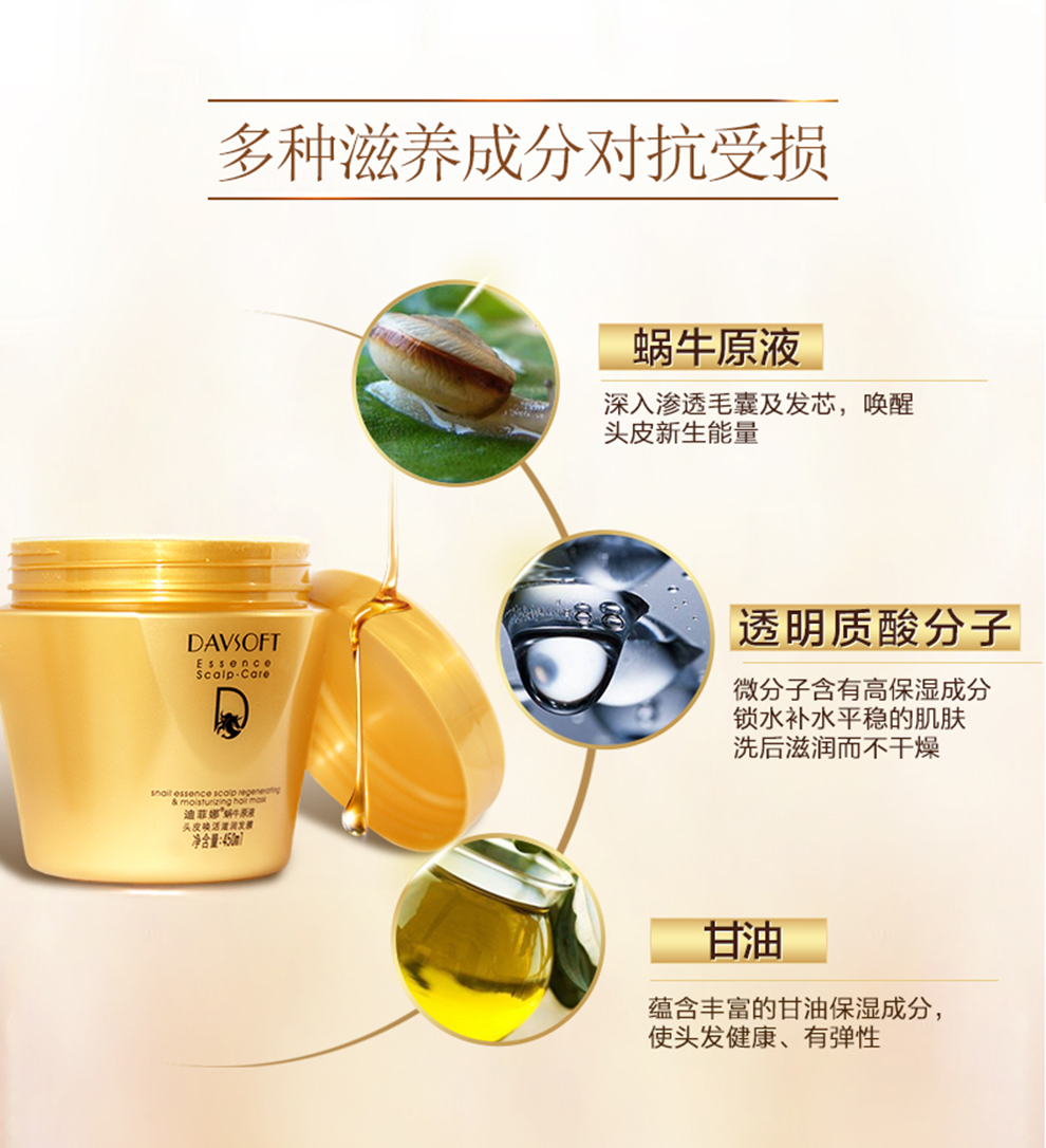 迪菲娜蜗牛原液头皮唤活滋润发膜450ml 金色