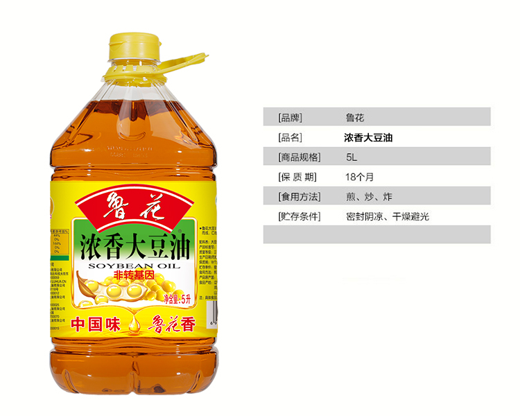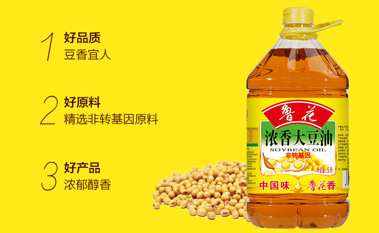 鲁花食用油非转基因浓香大豆油 5L 单位:桶 黄色