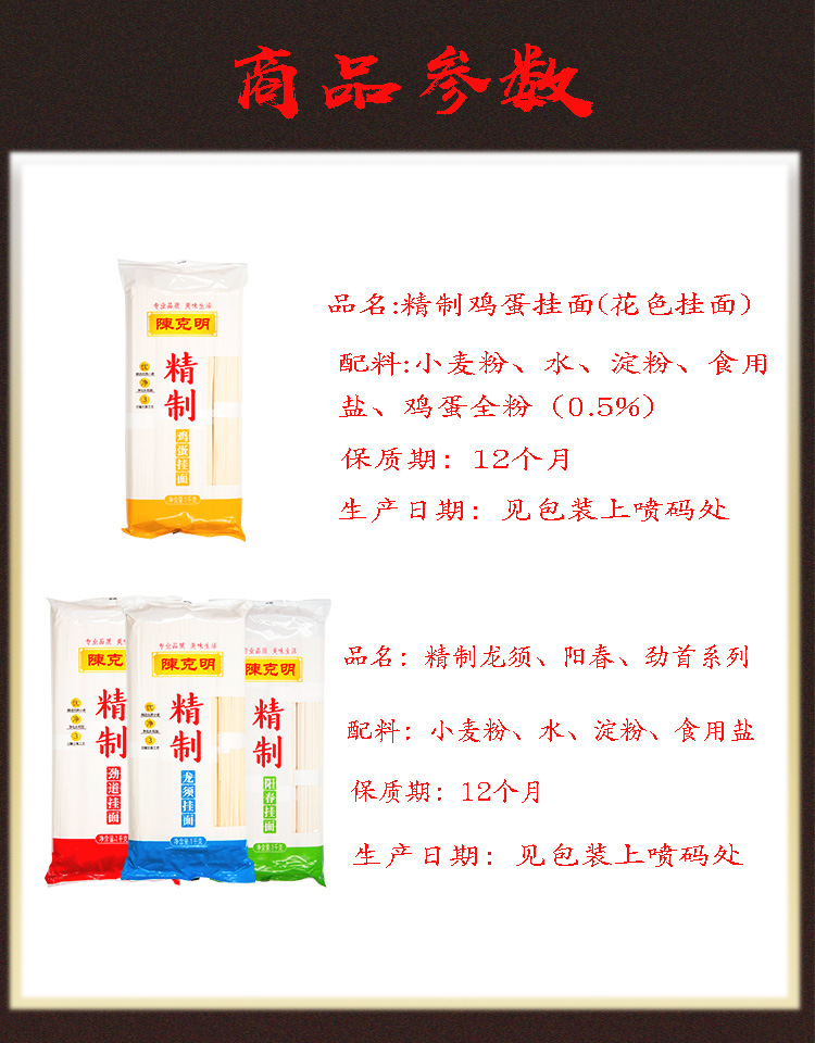 陈克明面条 精制鸡蛋挂面 1kg*2包/4斤 黄色