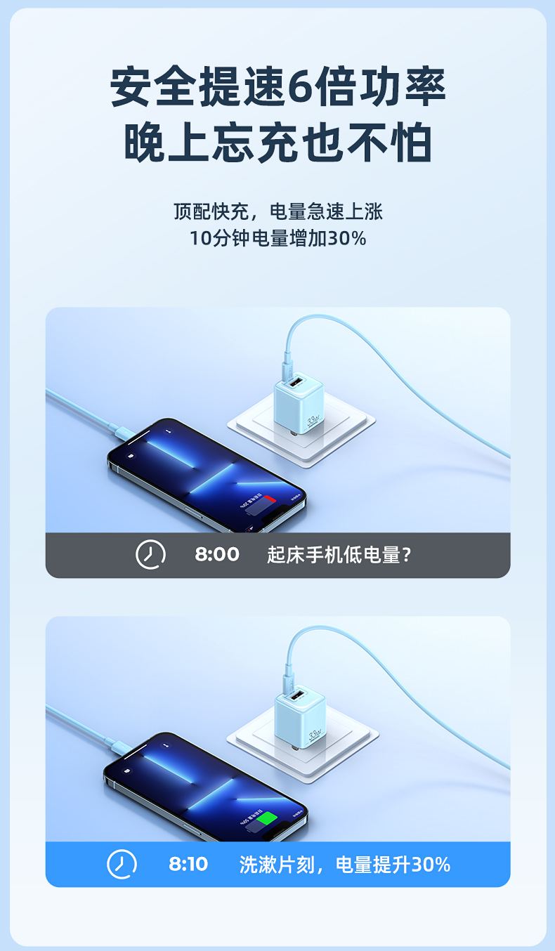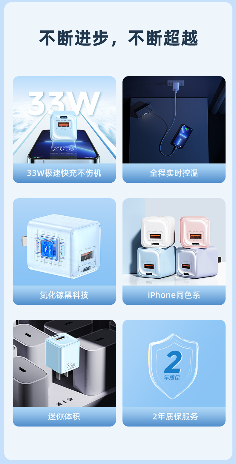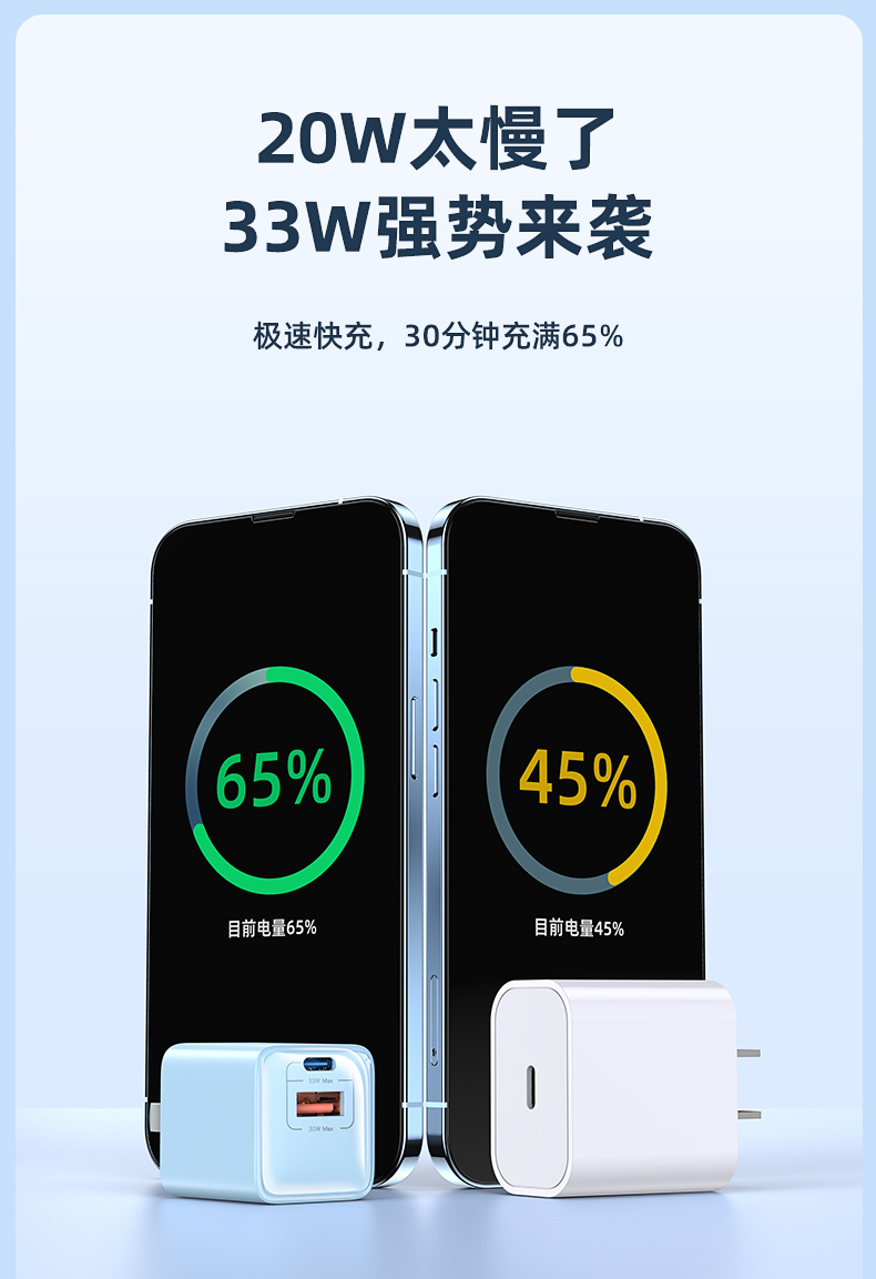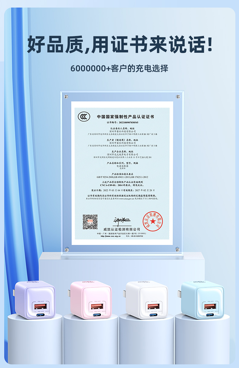 REMAX睿量 巴特系列 33W PD+QC 多兼容快充旅行适配器 RP-U26 中规鸢尾紫/冰透蓝/冰雾粉/白色 粉色
