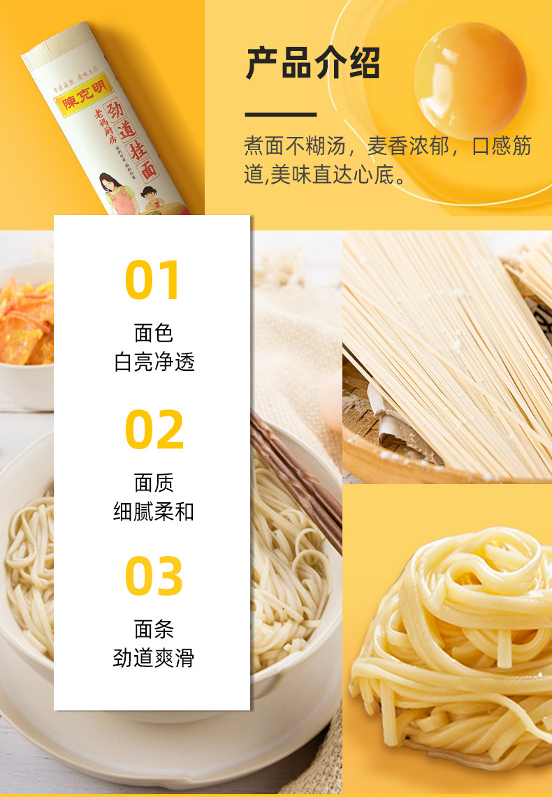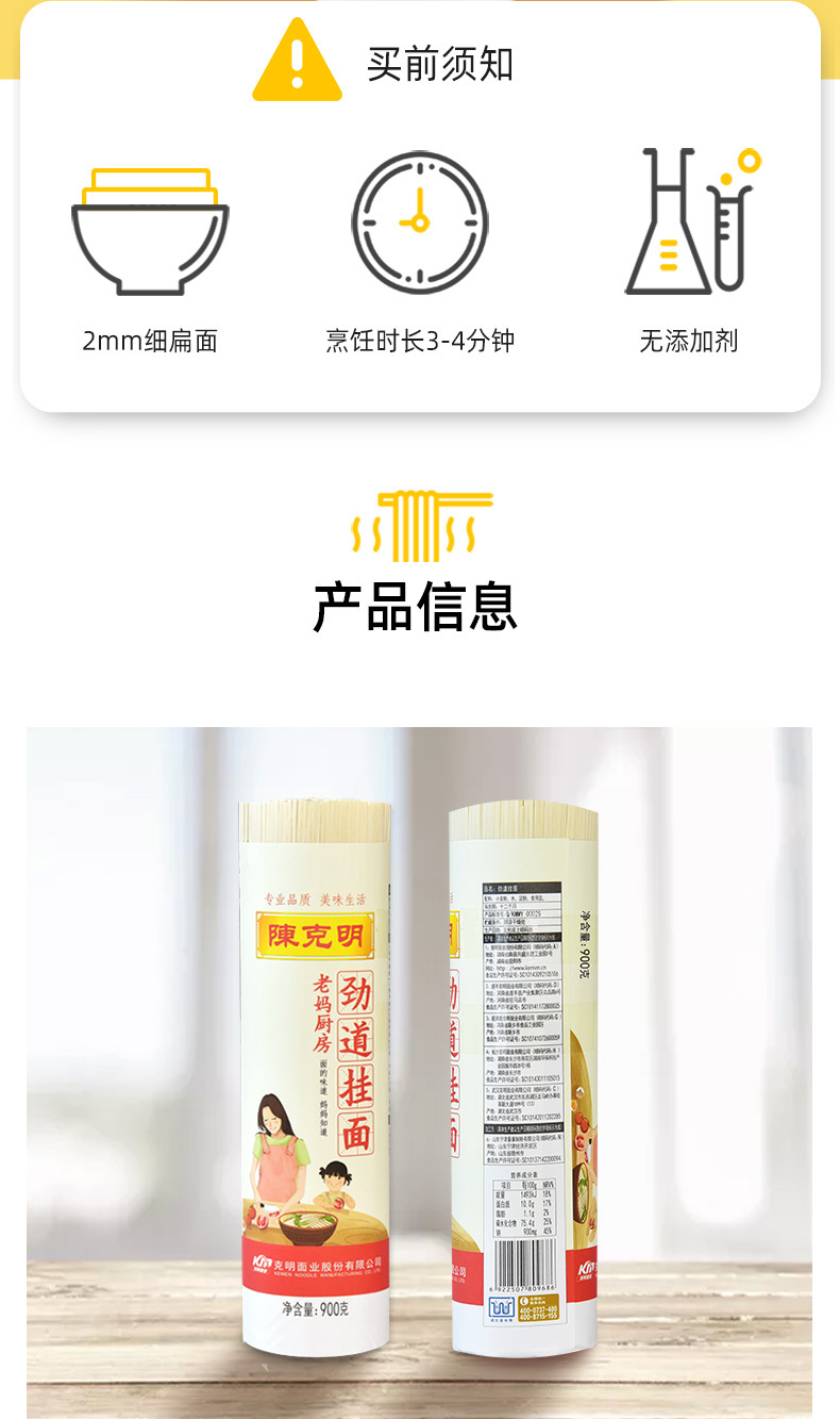 陈克明面条 老妈厨房劲道挂面 900g*3筒/5.4斤 易煮不糊有嚼劲 爽滑劲道 红色