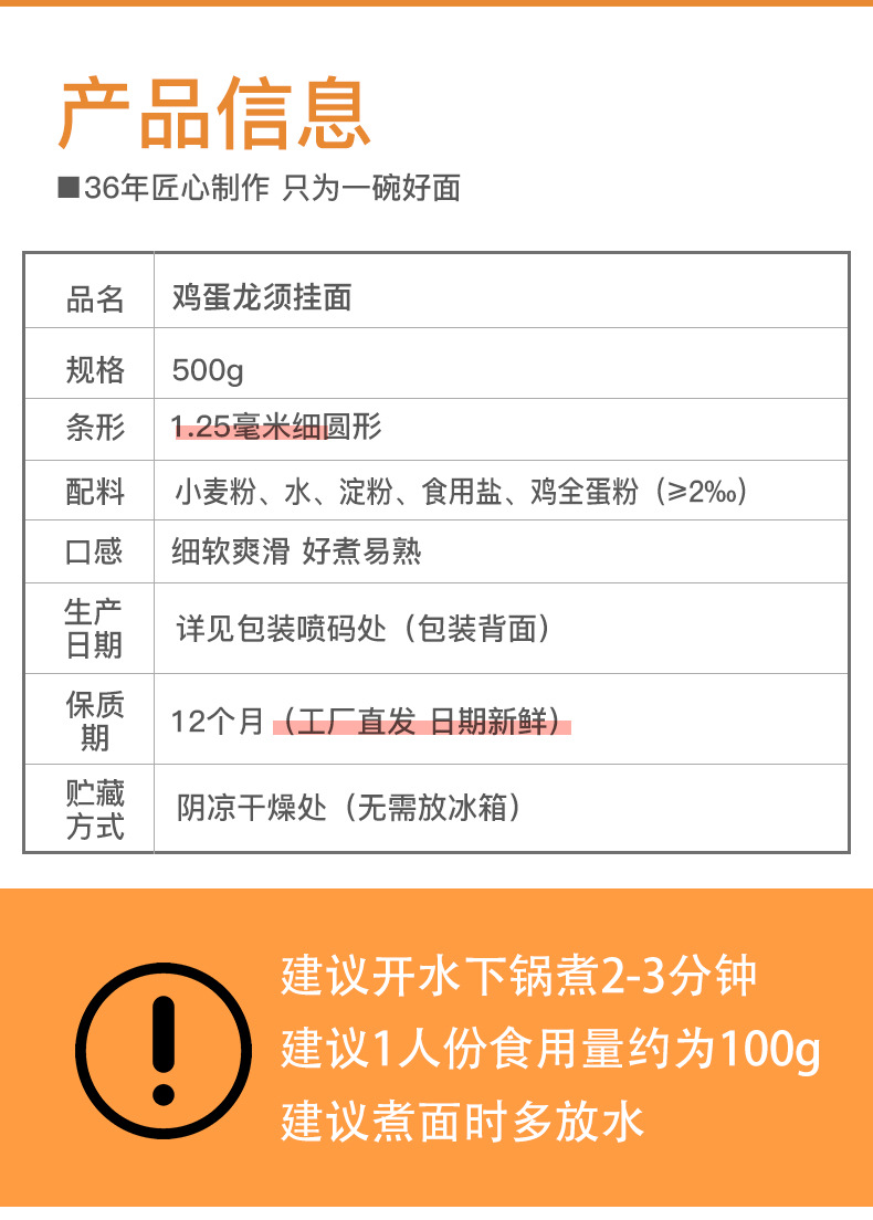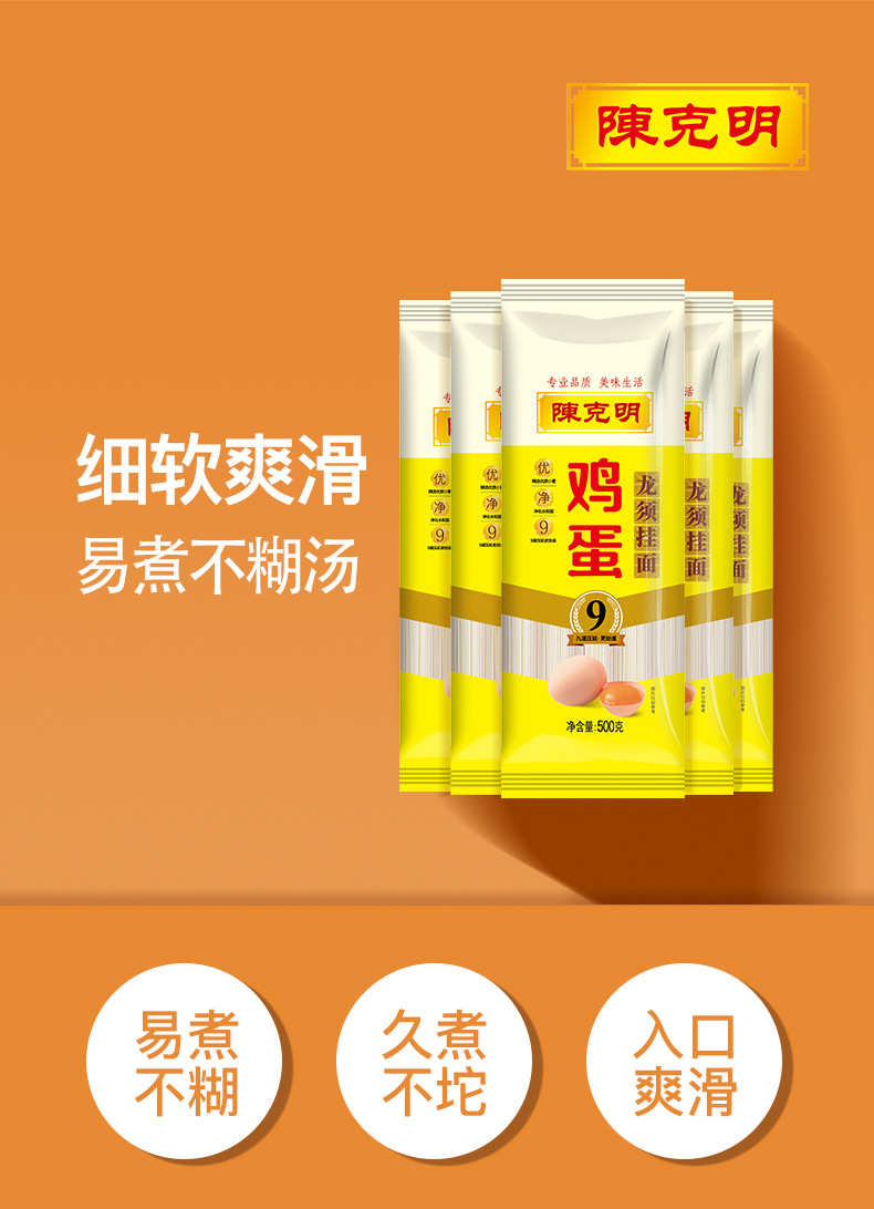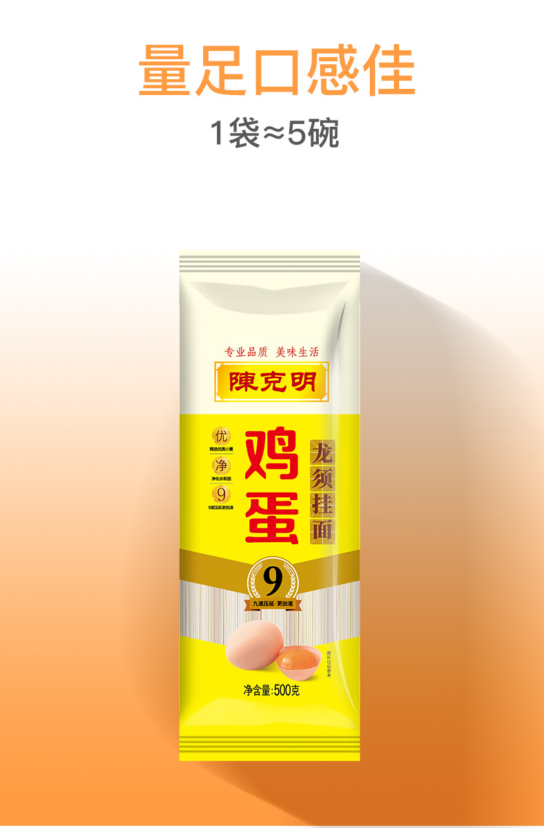 陈克明面条 鸡蛋龙须挂面 500g*5包/5斤 龙须面超细圆面条 黄色