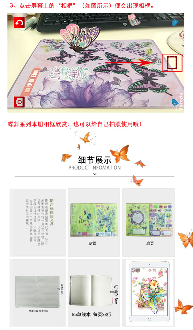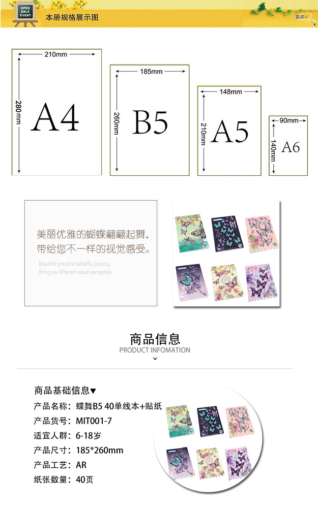 伊顿 蝶舞骑马钉单线本 B5 40页(西藏不发货) 6本装颜色随机