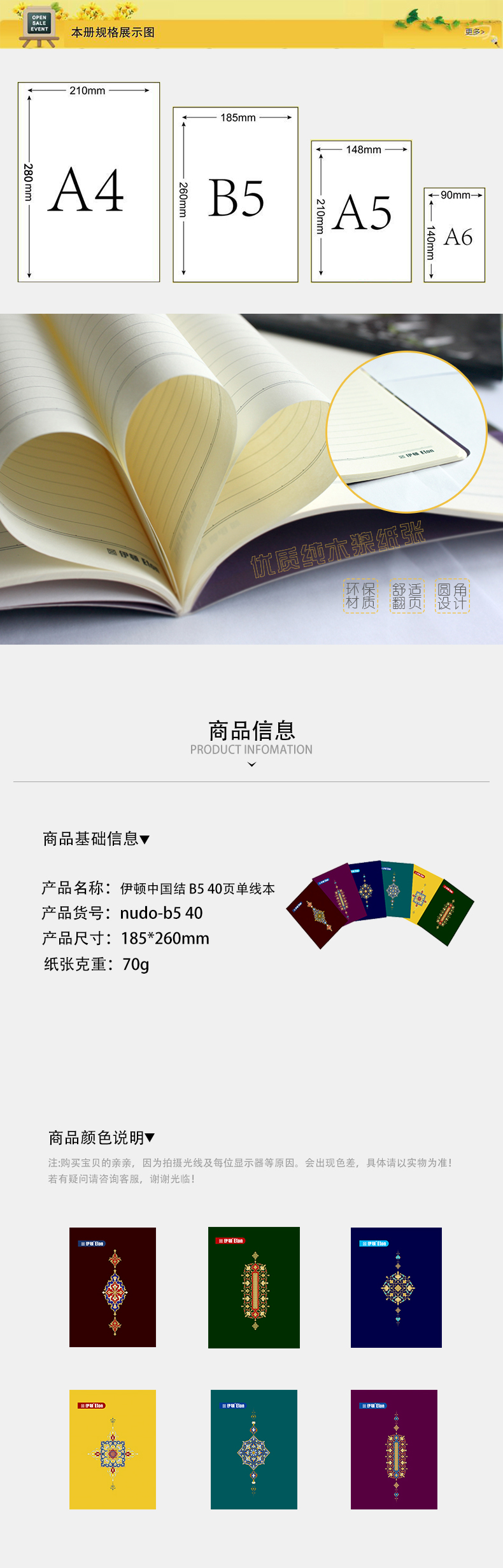 伊顿 中国结单线本 B5 40页(西藏不发货) 24本装颜色随机