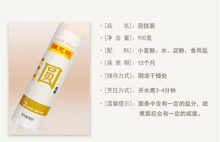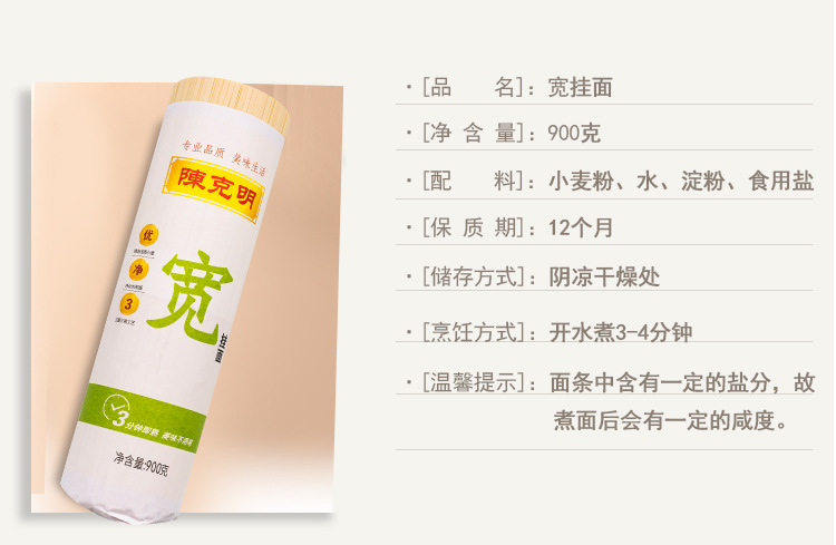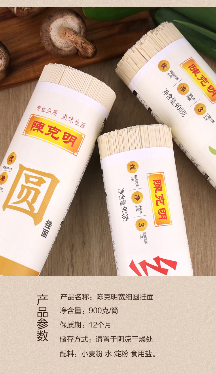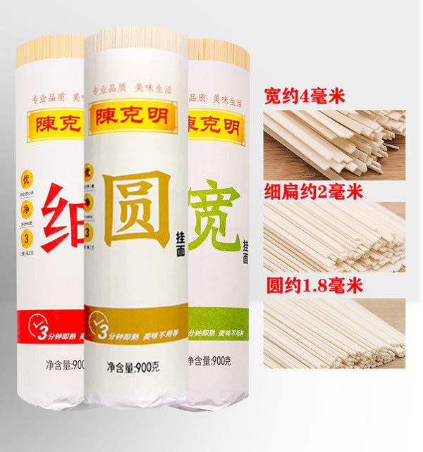 陈克明面条 宽挂面+细挂面+圆挂面 900g*3筒/5.4斤 三种条形 绿色