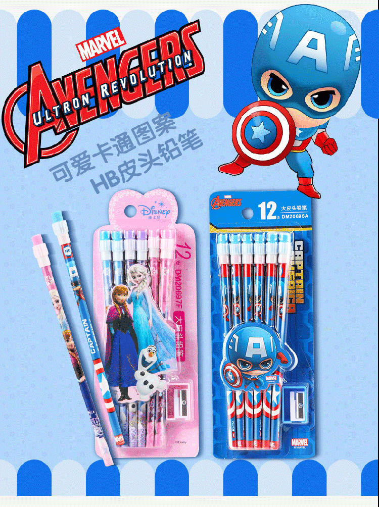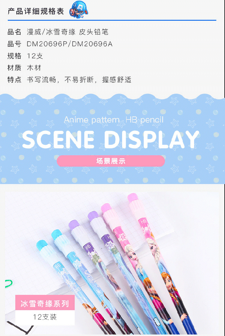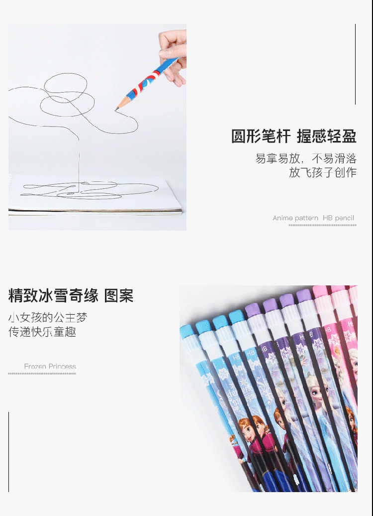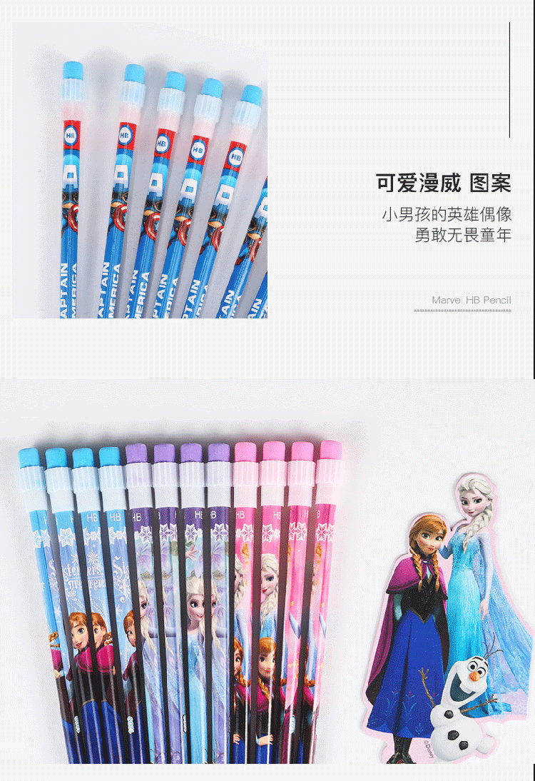 迪士尼(Disney)文具12支HB原木书写铅笔 小学生铅笔写字笔 儿童卡通大皮头铅笔 冰雪奇缘系列DM20697F 10盒装