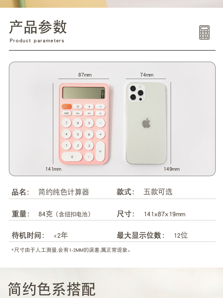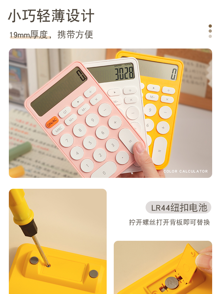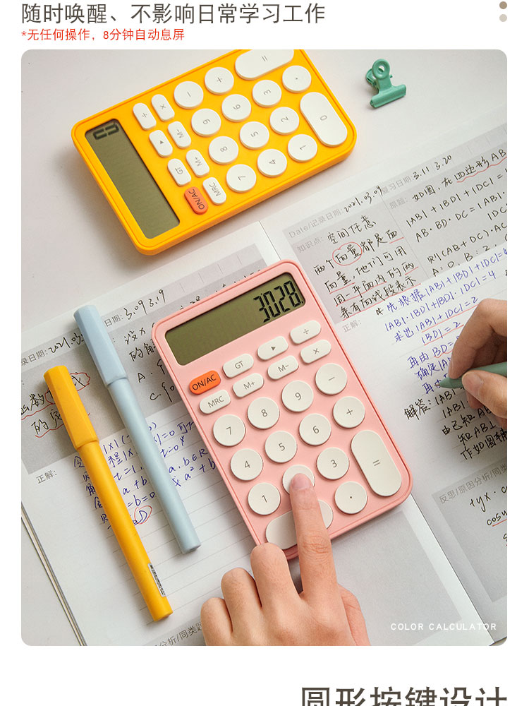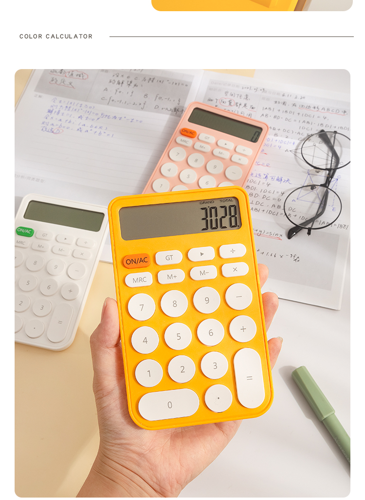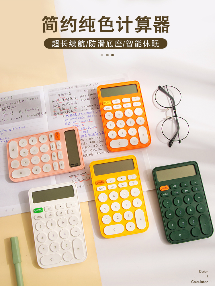 三年二班 糖果色计算器12位大屏幕ins风简约计算机简约学生考试办公用迷你便携高颜值会计记算机器 图片色