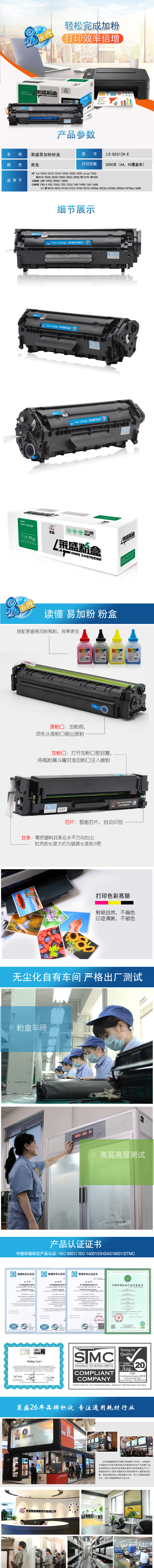 莱盛 LS-Q2612A-E 激光打印机粉盒易加粉 全新 2K(单位:支) 黑色