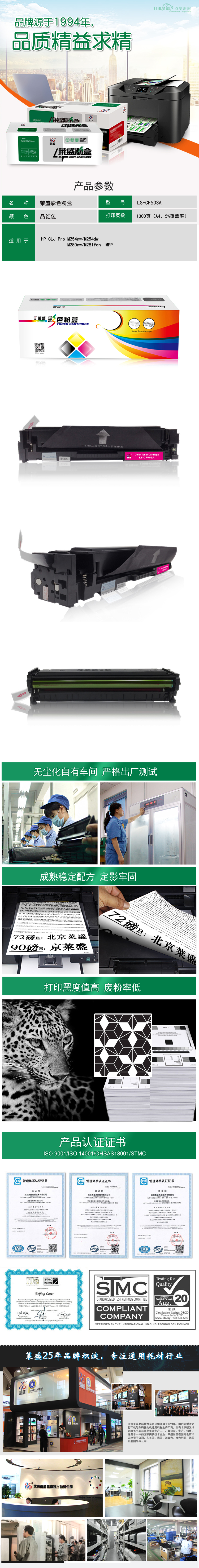莱盛 LS-CF503A 彩色激光打印机粉盒 全新 有芯片 1.3K 品红色