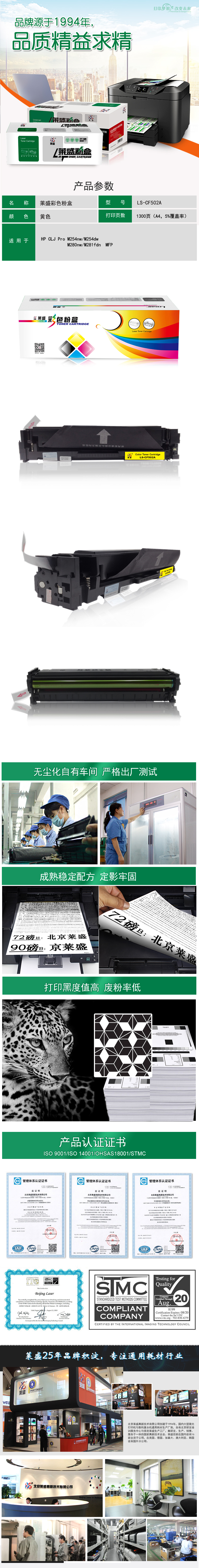 莱盛 LS-CF502A 彩色激光打印机粉盒 全新 有芯片 1.3K 黄色