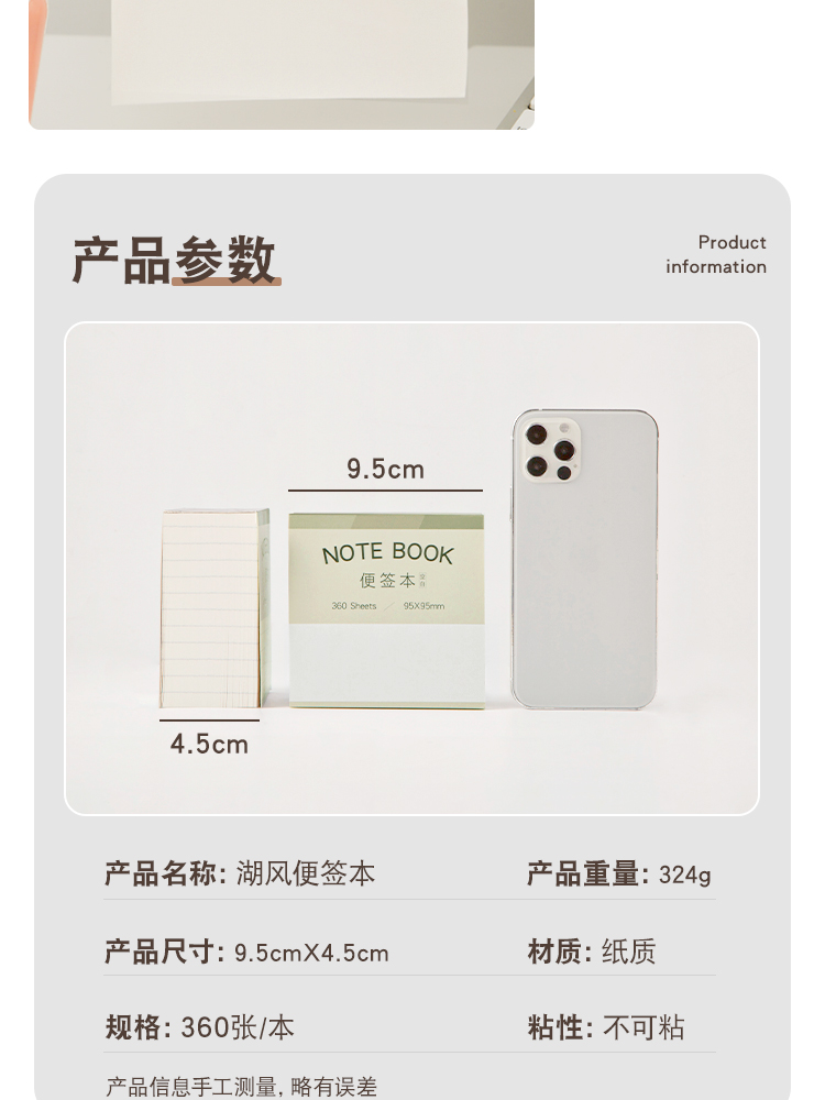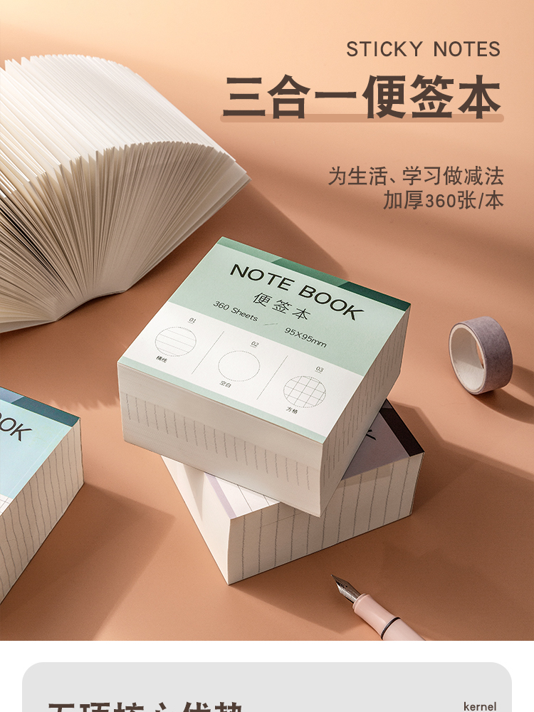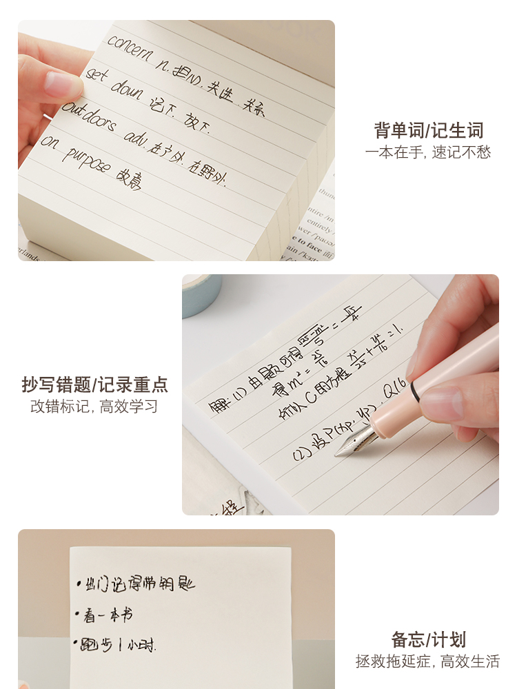 三年二班 横线大容量便利贴无粘性可撕便签本ins风大号便签纸学生文具学习备忘录留言纸 横线(360张)