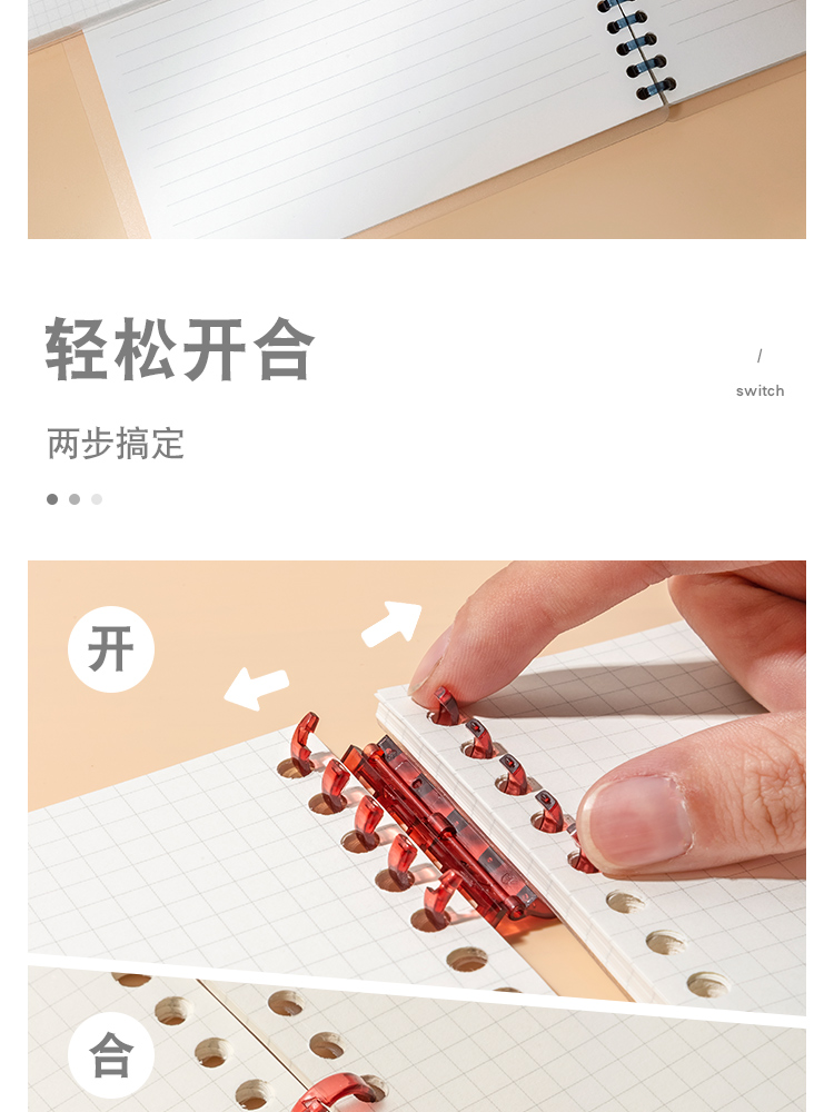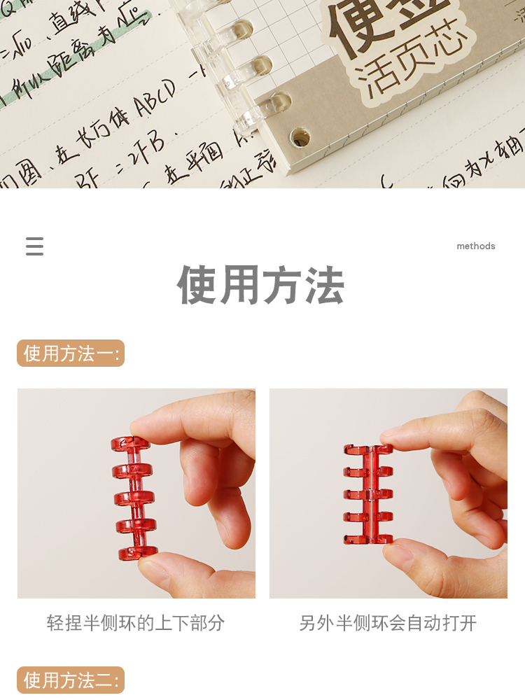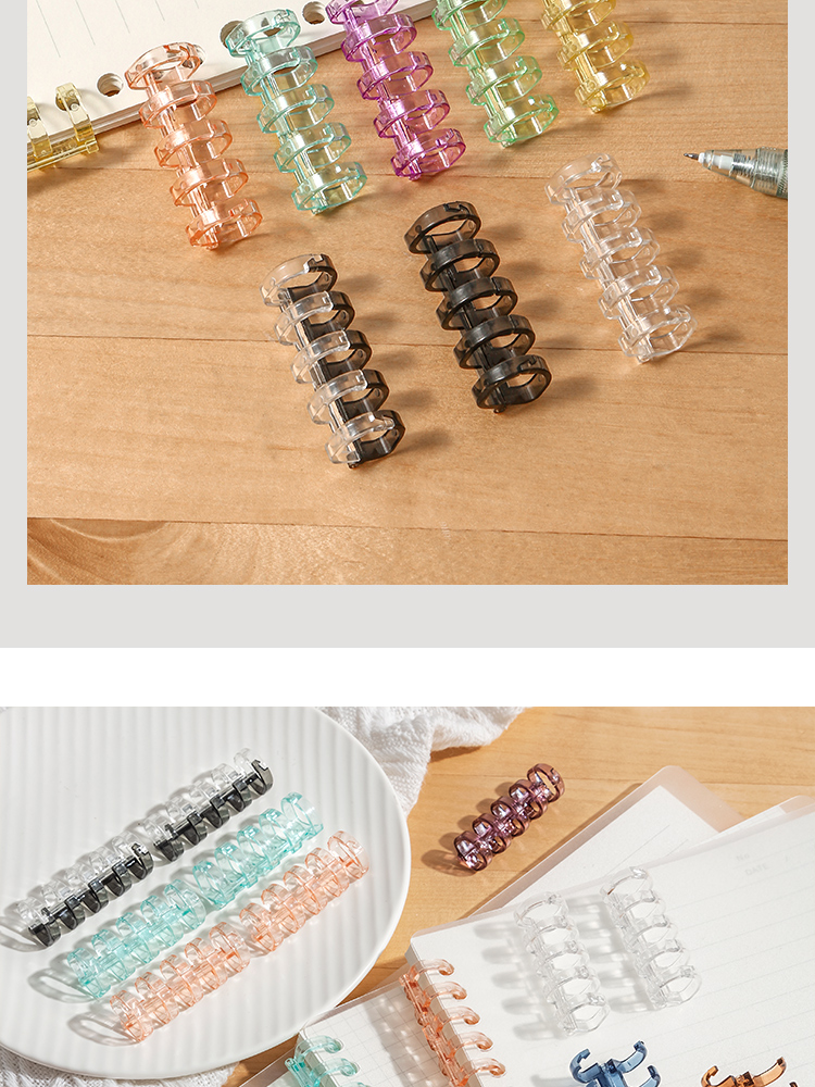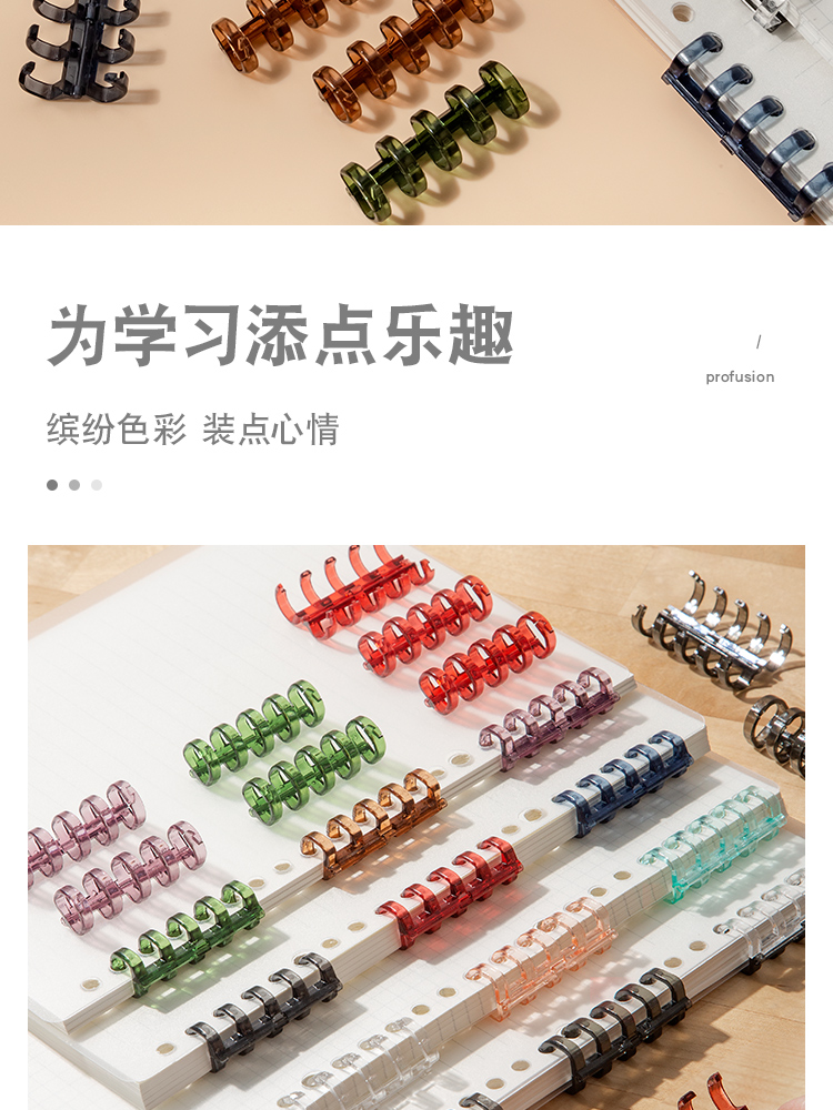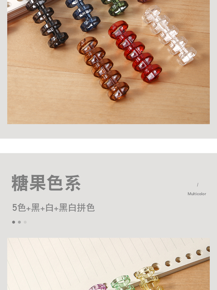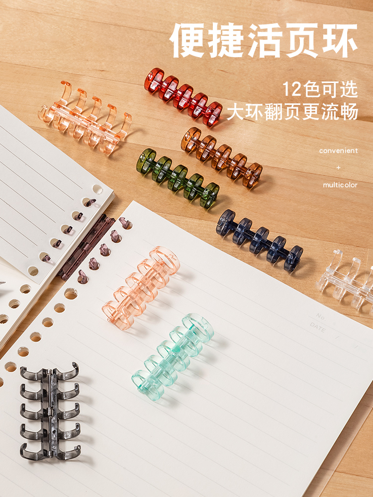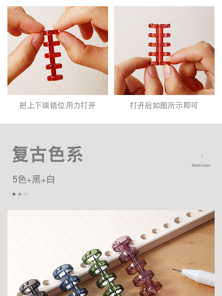 三年二班DIY活页环自制笔记本本子活页胶圈可拆卸外壳线圈学生装订夹子文具办公用品开合器糖果色系/套 糖果色系-黑+白(5个装)