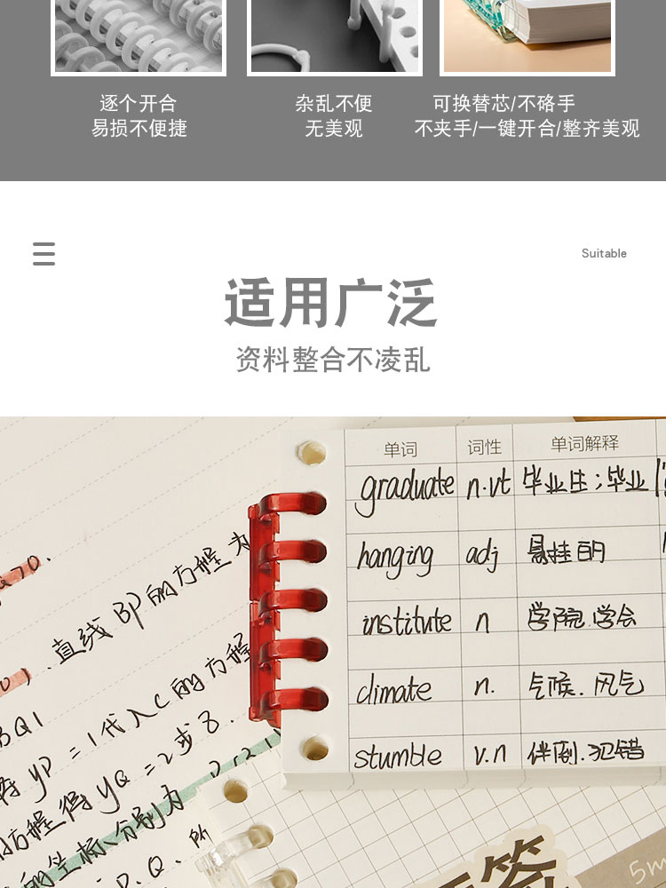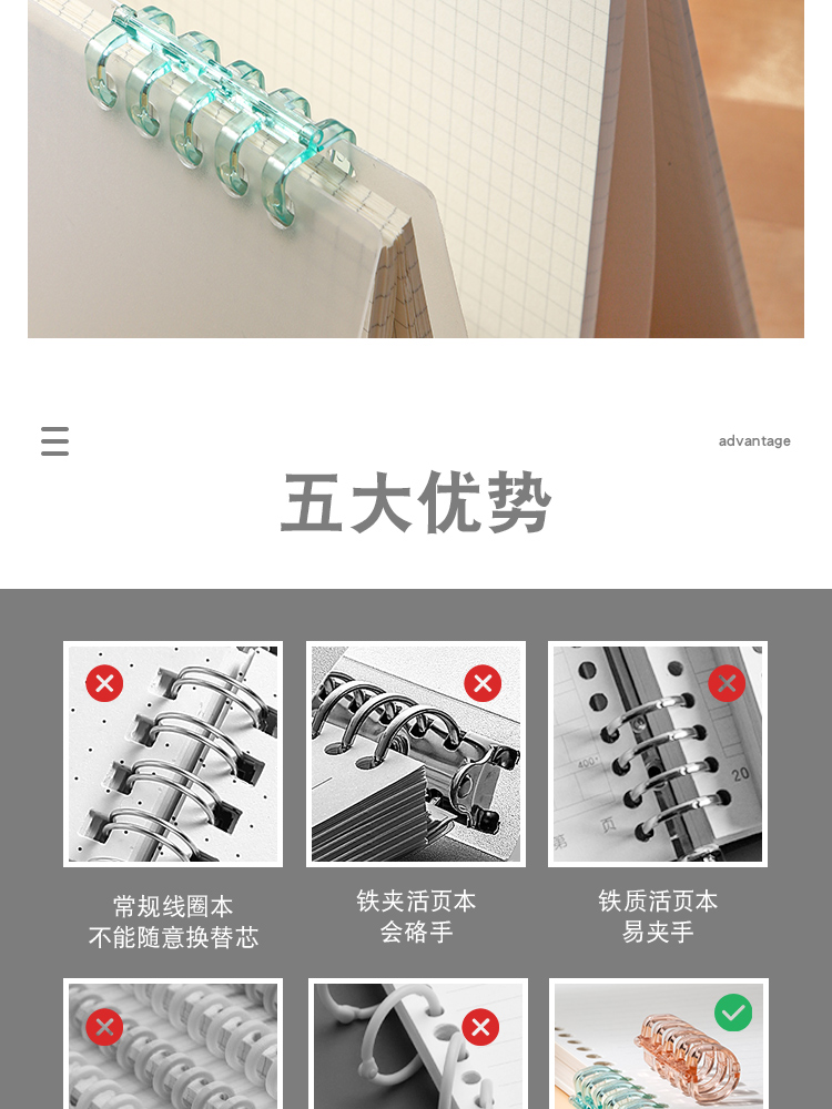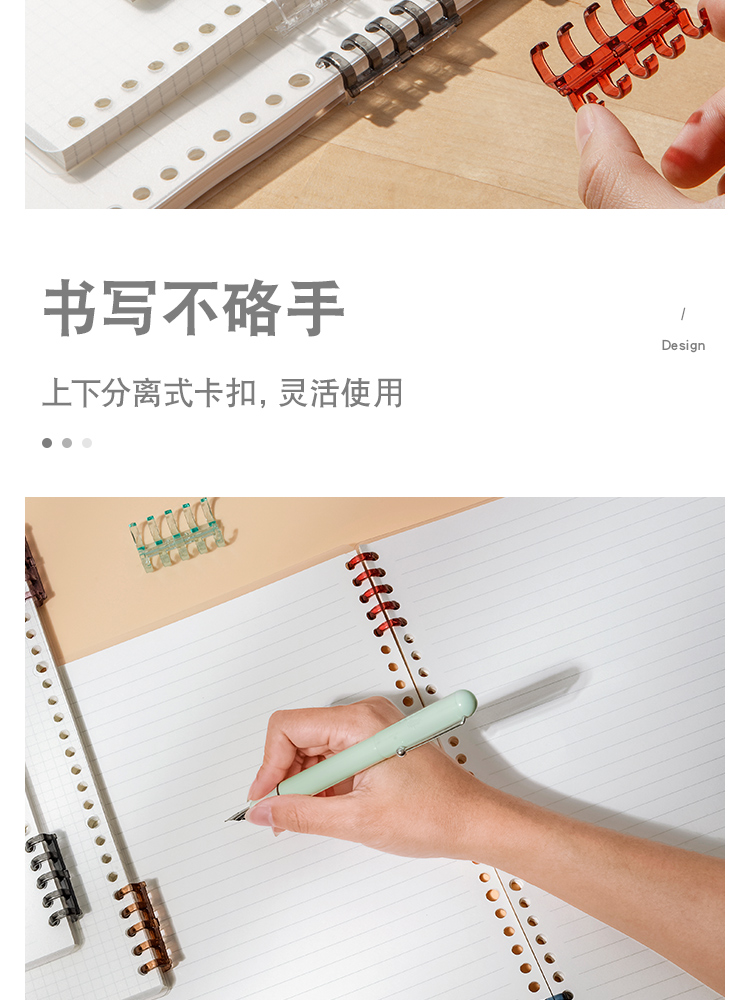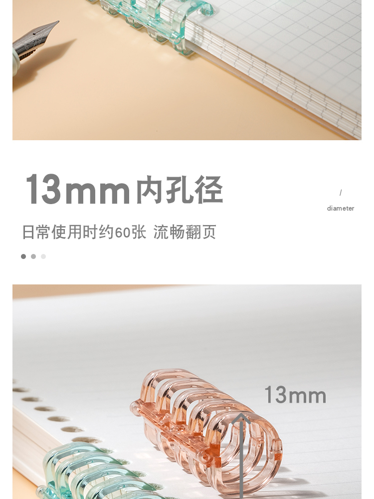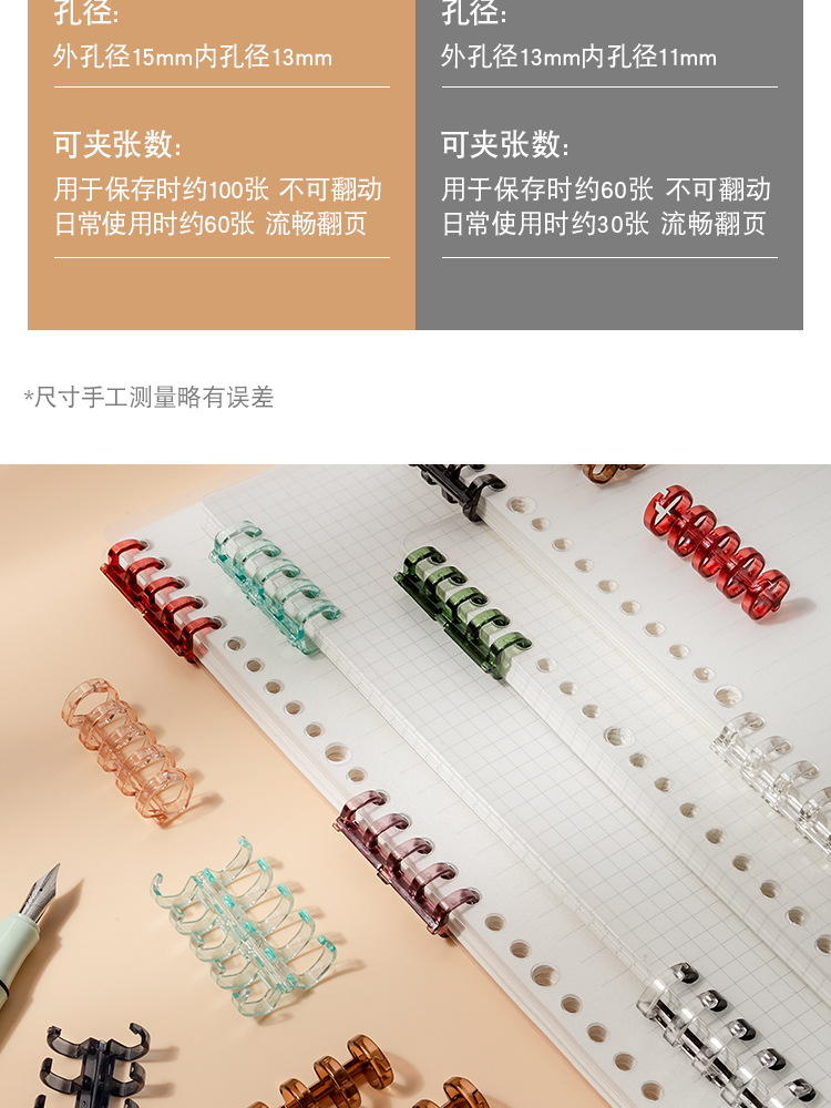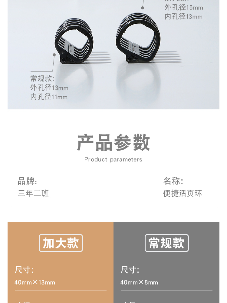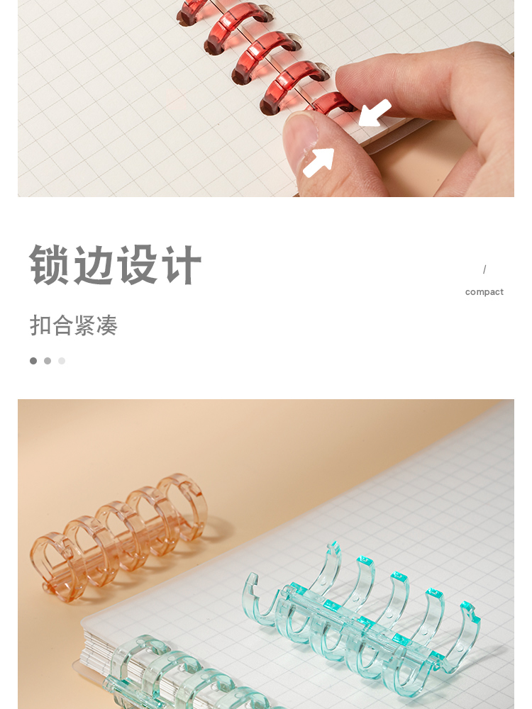 三年二班DIY活页环自制笔记本本子活页胶圈可拆卸外壳线圈学生装订夹子文具办公用品开合器糖果色系/套 糖果色系-黑+白(5个装)