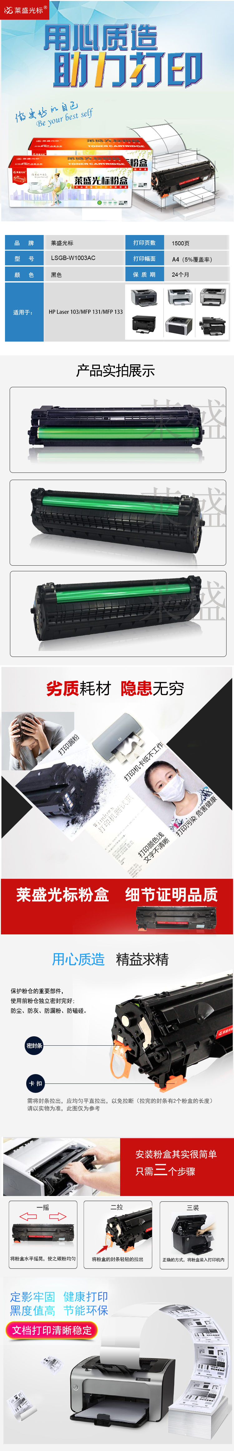 莱盛光标 LSGB-W1003AC 激光打印机粉盒 全新 有芯片 1.5K 黑色