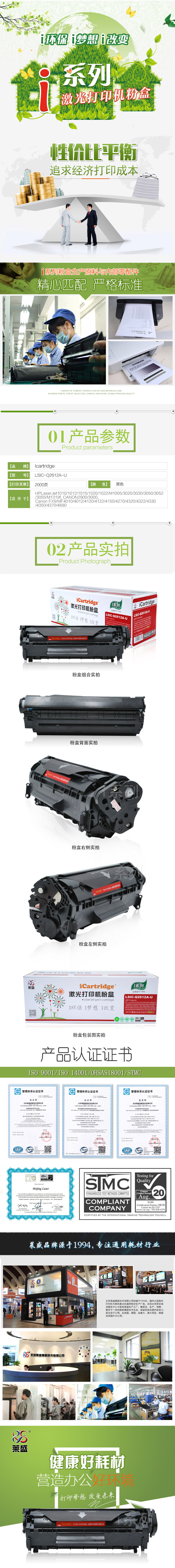 莱盛(laser) I系列LSIC-Q2612-U 2000页 适用于HP LJ-1010 1012 /1015/1018 墨粉盒 1.00 只/支 (计价单位:支) 黑