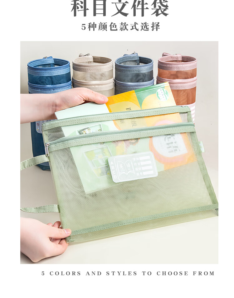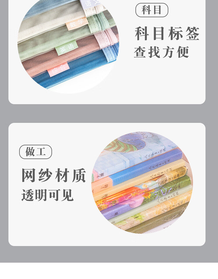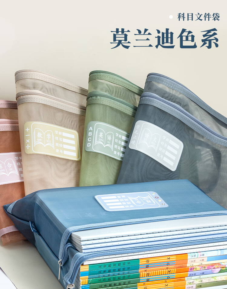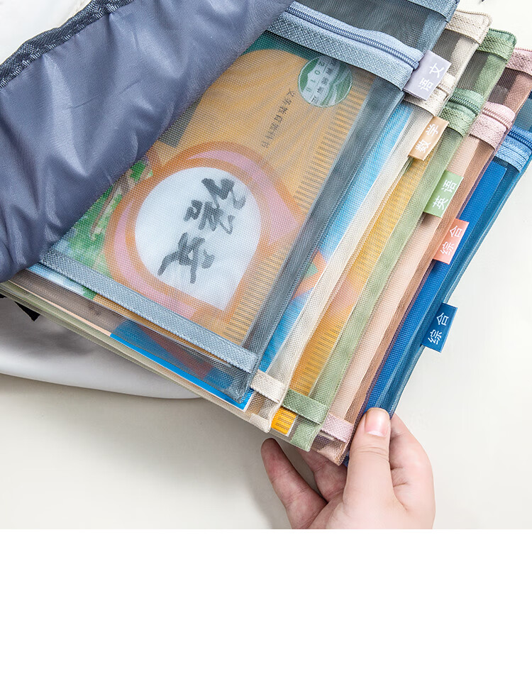 三年二班 5个装单层网纱带标签科目袋文件袋 小学生初中学科分类作业试卷收纳袋文具袋补习袋 单层五个装 单层(语数外综合作业)