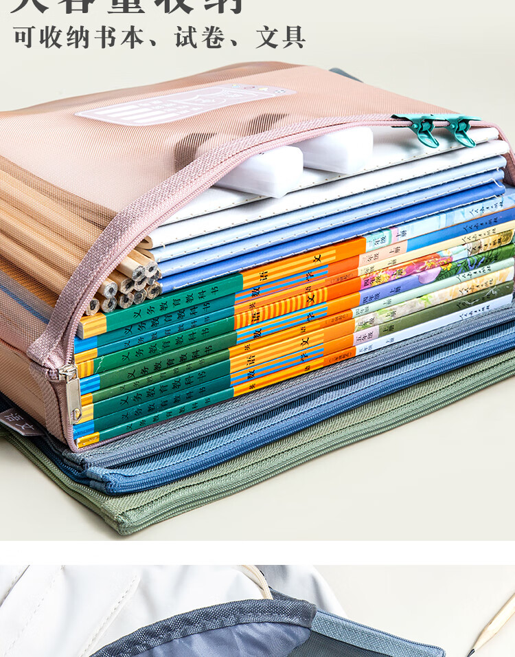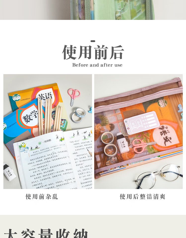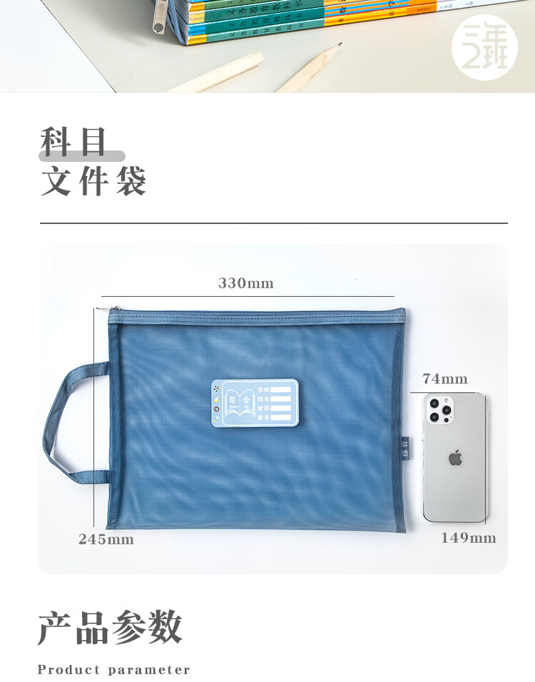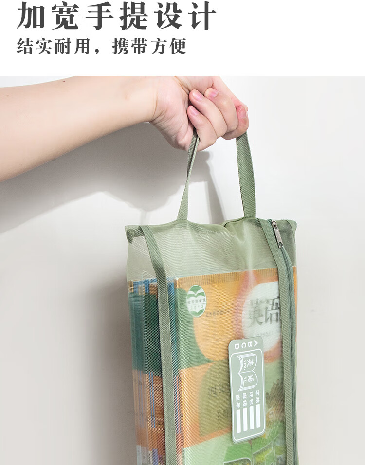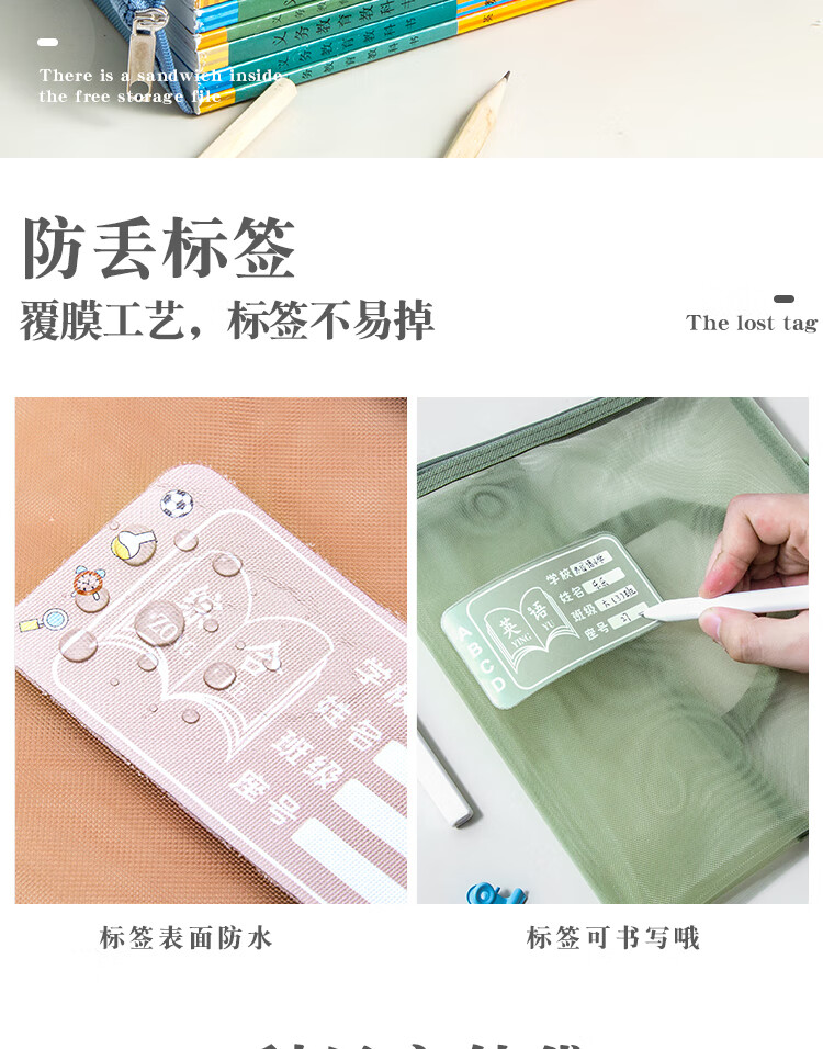 三年二班 5个装单层网纱带标签科目袋文件袋 小学生初中学科分类作业试卷收纳袋文具袋补习袋 单层五个装 单层(语数外综合作业)