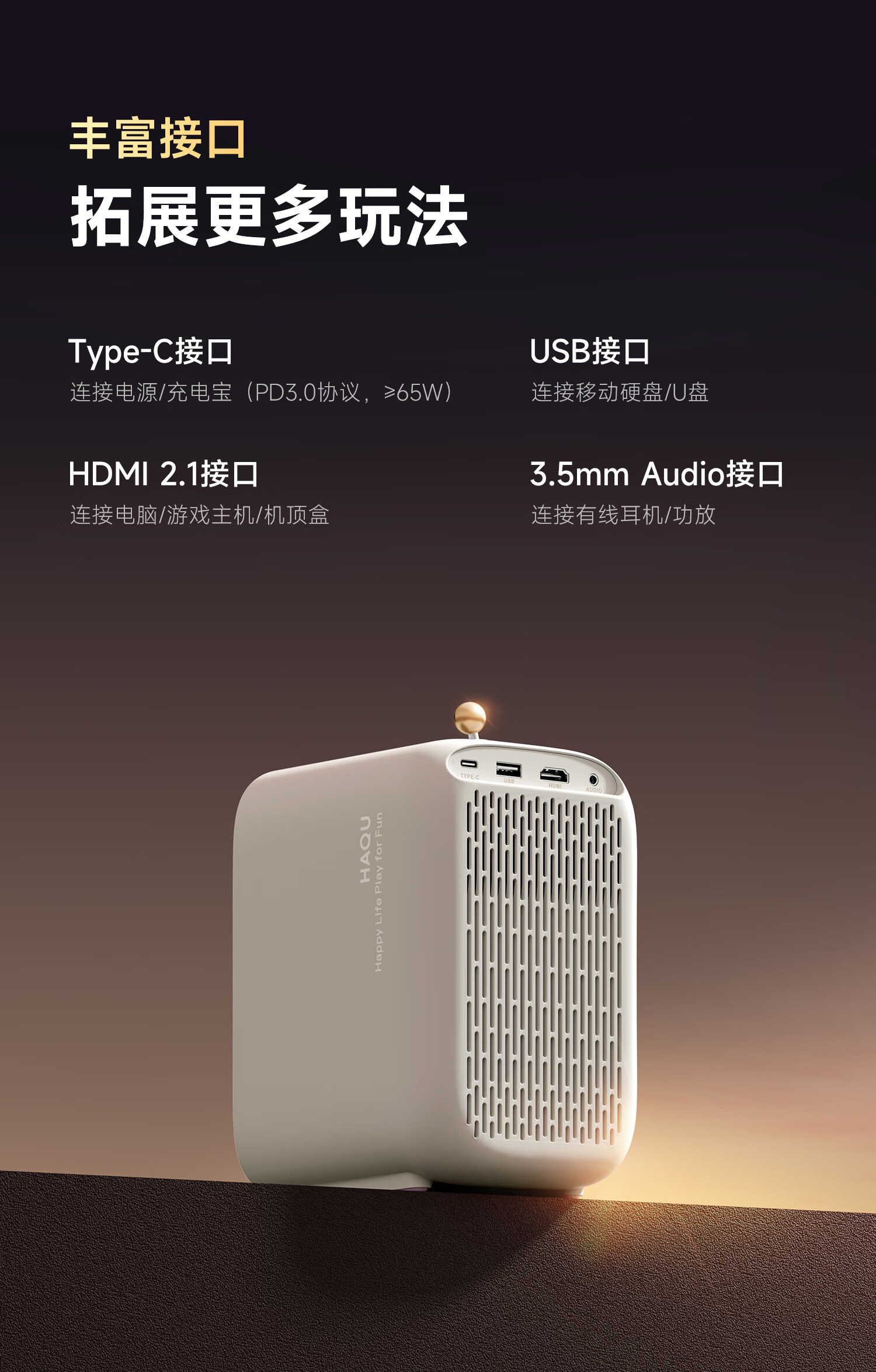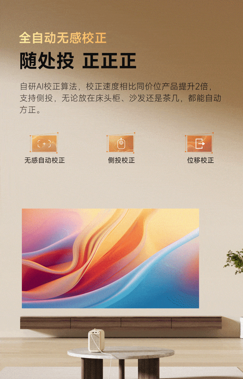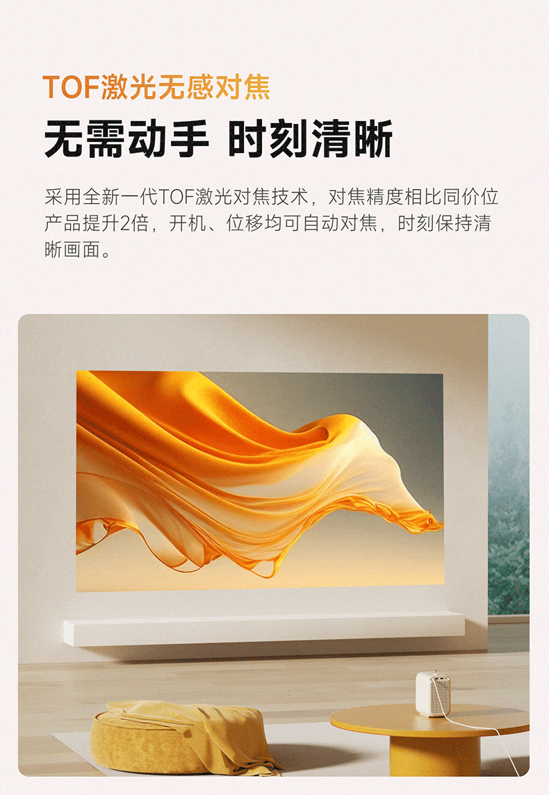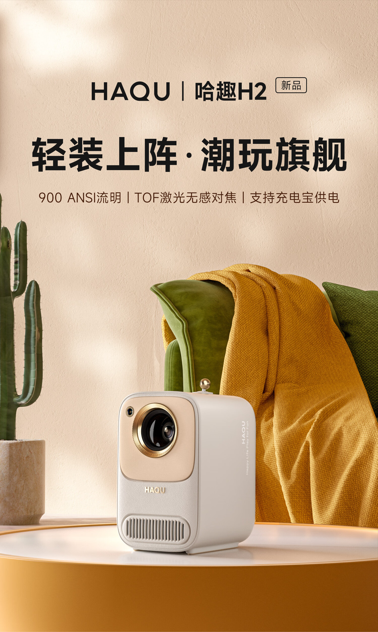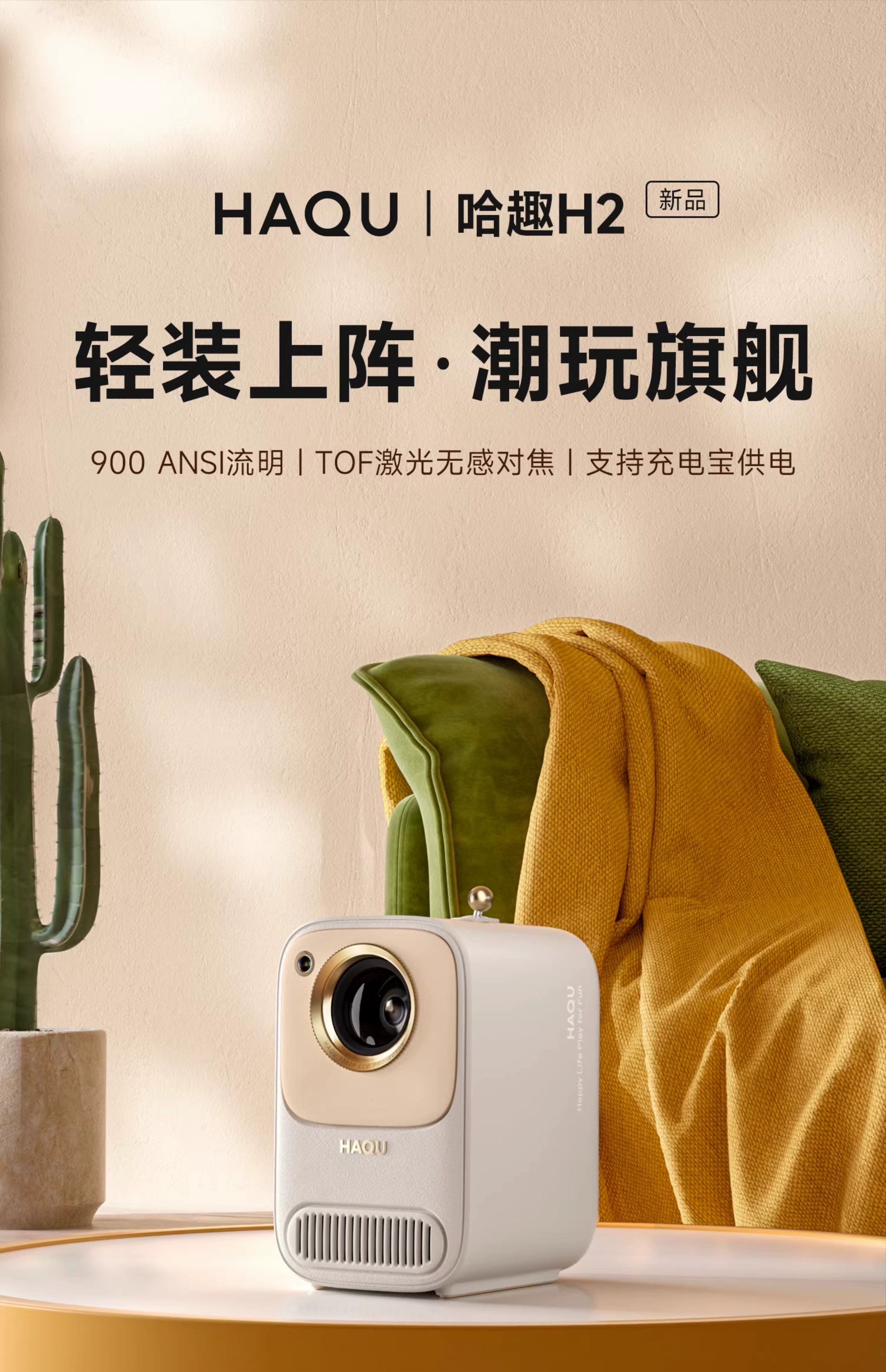 哈趣 H2 投影仪家用 投影机便携露营 智能家庭影院(900ANSI流明 激光无感对焦 支持充电宝供电) 枫叶色