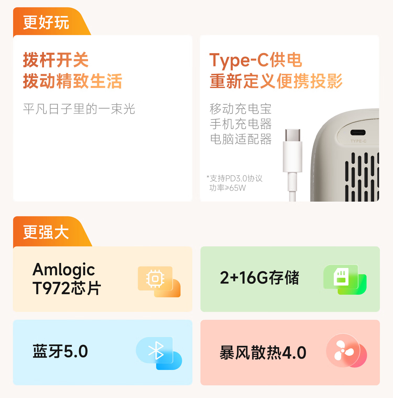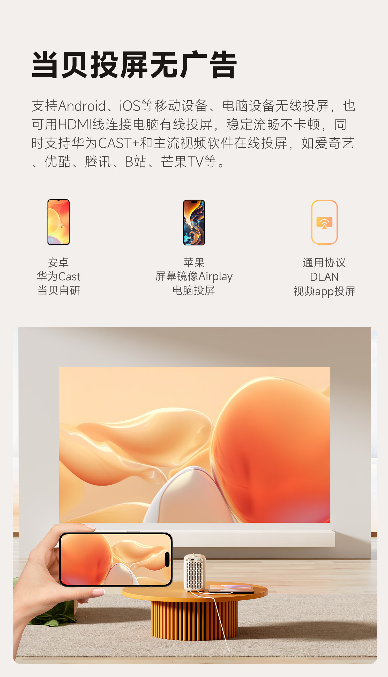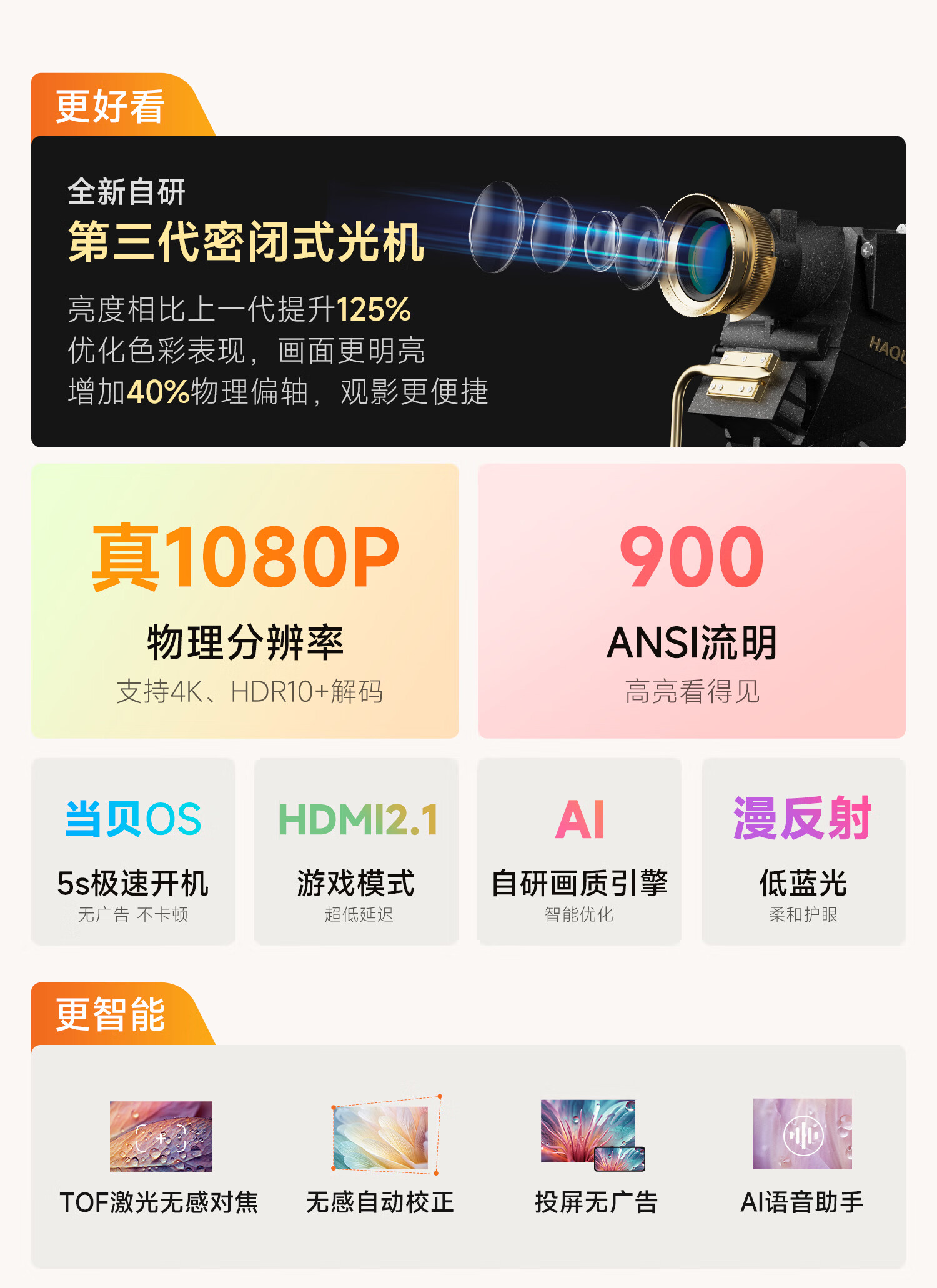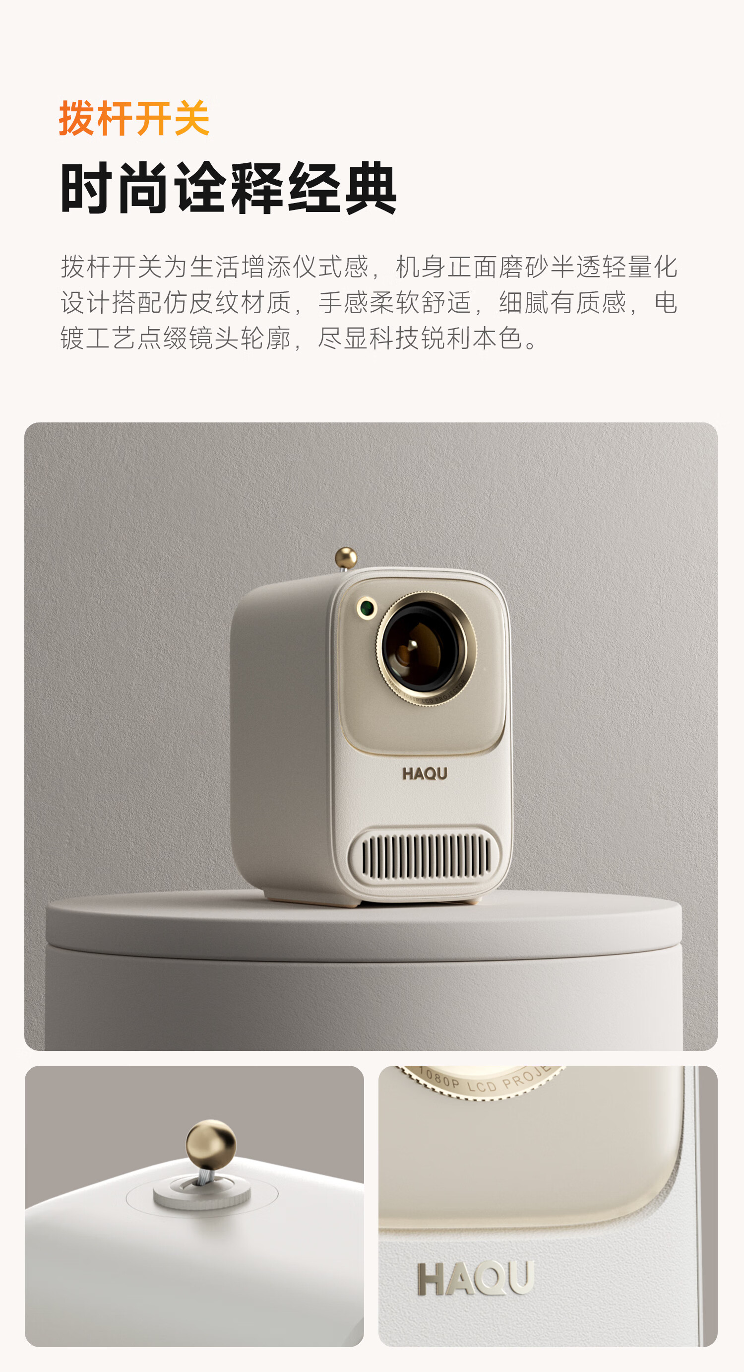 哈趣 H2 投影仪家用 投影机便携露营 智能家庭影院(900ANSI流明 激光无感对焦 支持充电宝供电) 枫叶色