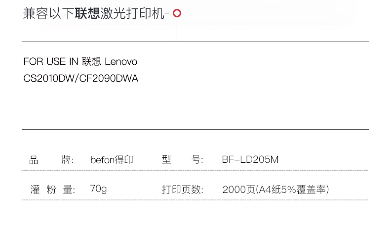 得印(befon) PLUS BF-LD205M 2000页 适用于联想 CS2010DW 硒鼓 1.00 只/支 (计价单位:支) 红色