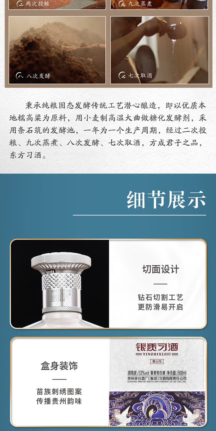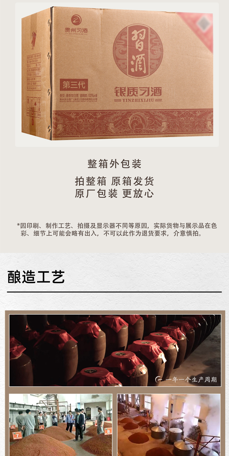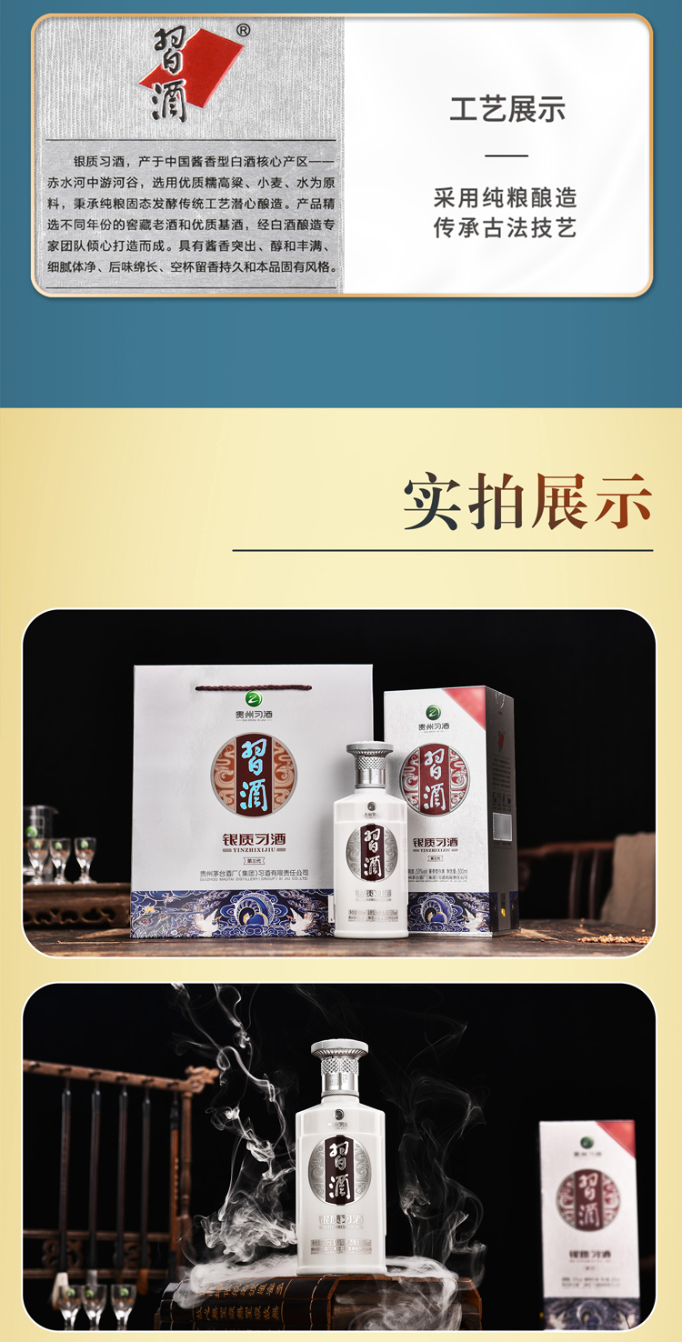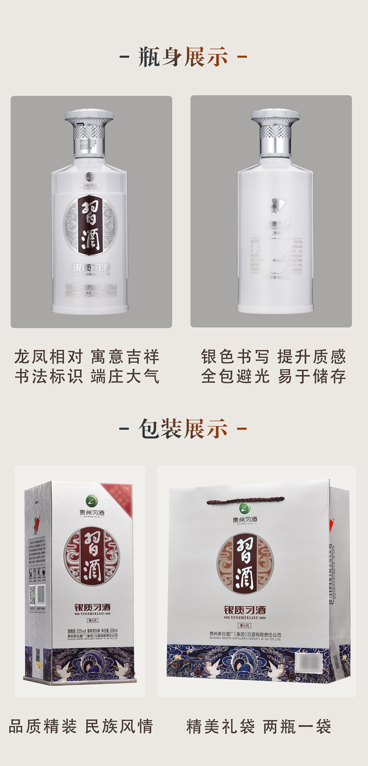习酒第三代银质 酱香型白酒53度 500ml*6瓶 整箱装 贵州白酒 银色