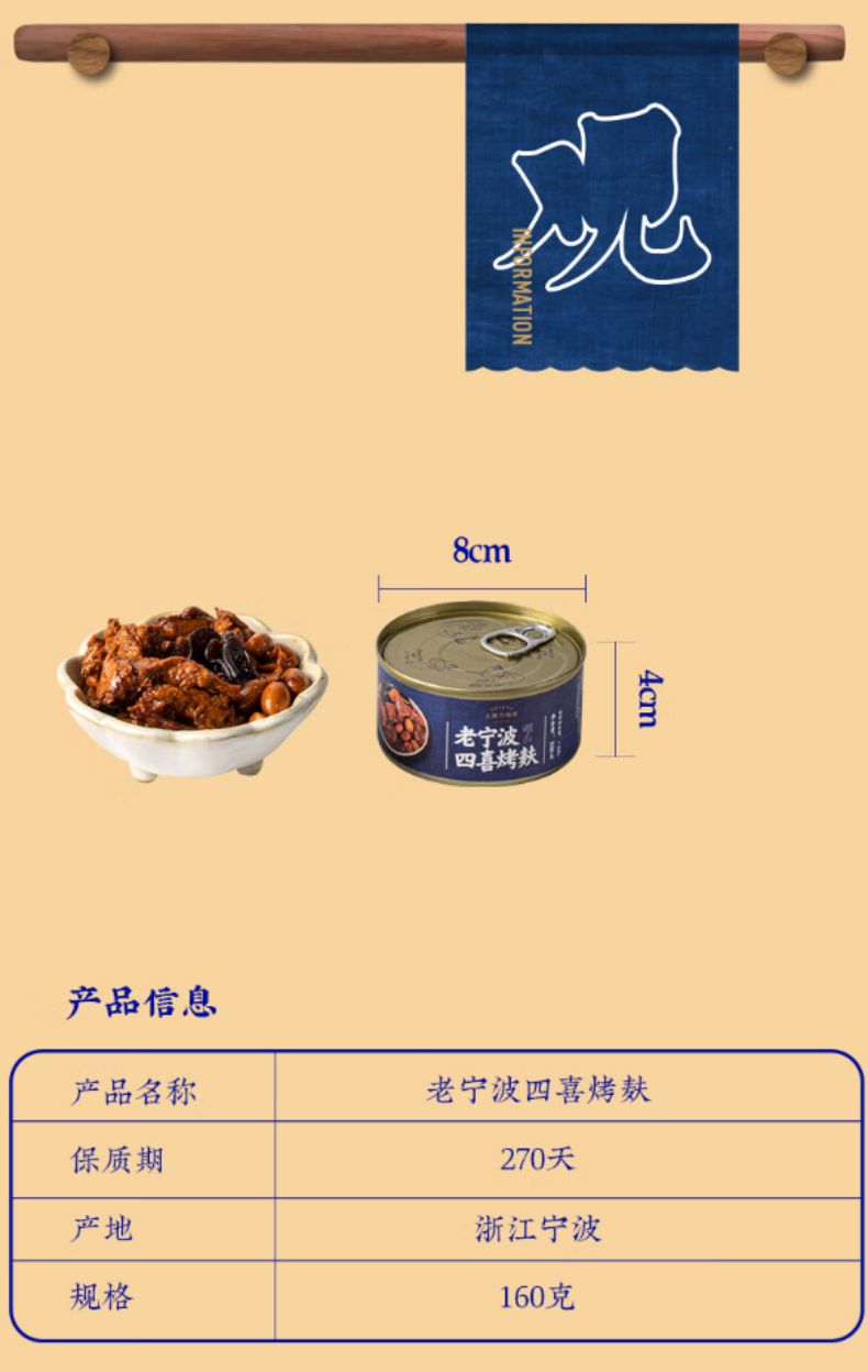 三关六码头老宁波四喜烤麸160g*4(单位:组) 蓝色