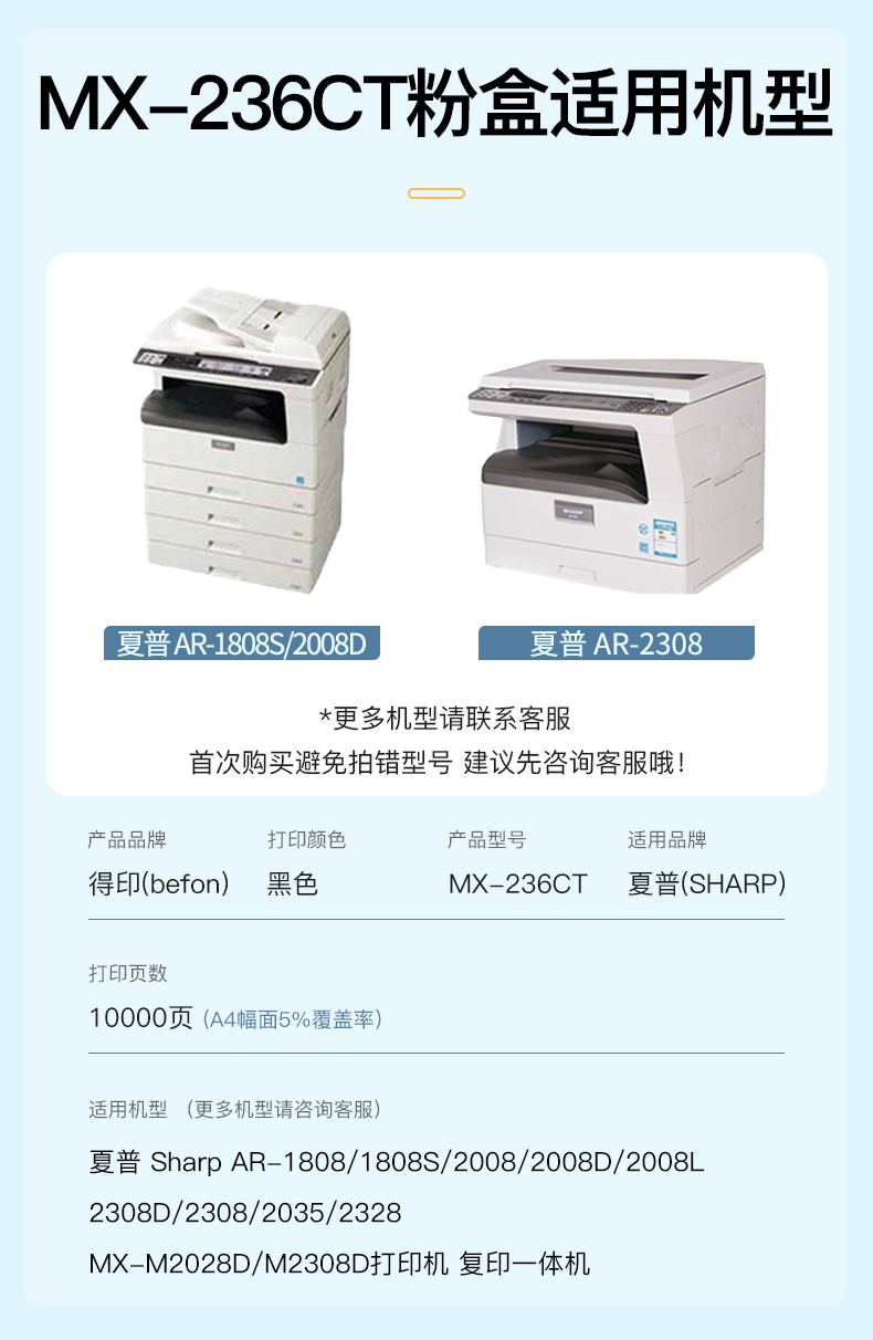得印(befon) BF-236CT 8000页 适用夏普2308N 2008D 墨粉盒 1.00 只/支 (计价单位:支) 黑色