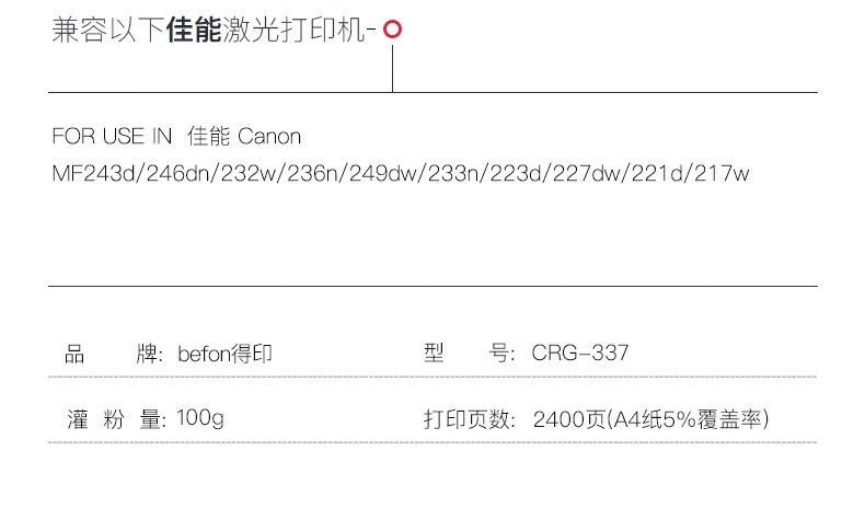 得印(befon) BF-CRG337 易加粉 2400页 适用佳能 MF243d/246dn 硒鼓 1.00 只/支 (计价单位:支) 黑色