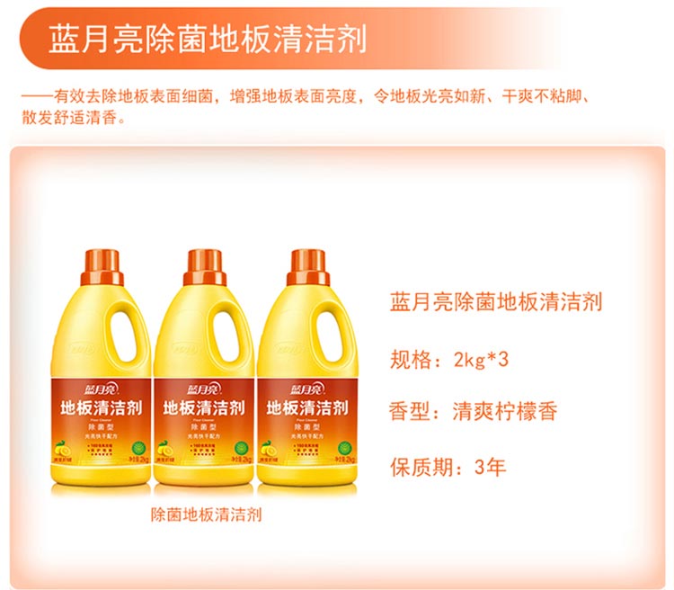 蓝月亮 去污除菌 2kg*3 地板清洁剂 黄色(单位:组)