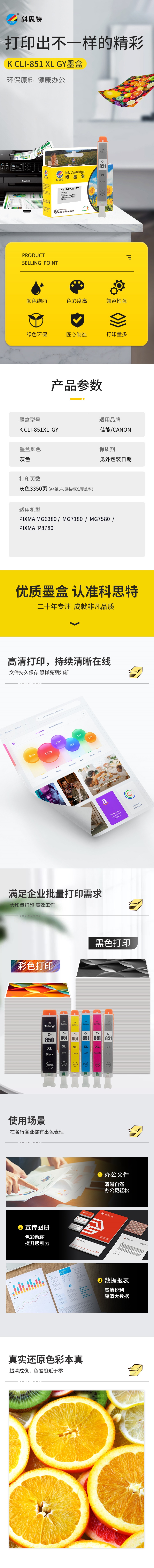 科思特 CLI-851XL GY 打印量3350页 适用于佳能PIXMA MG6380/MG7180/MG7580/PIXMA iP8780 墨盒 (计价单位:盒) 灰色 灰色