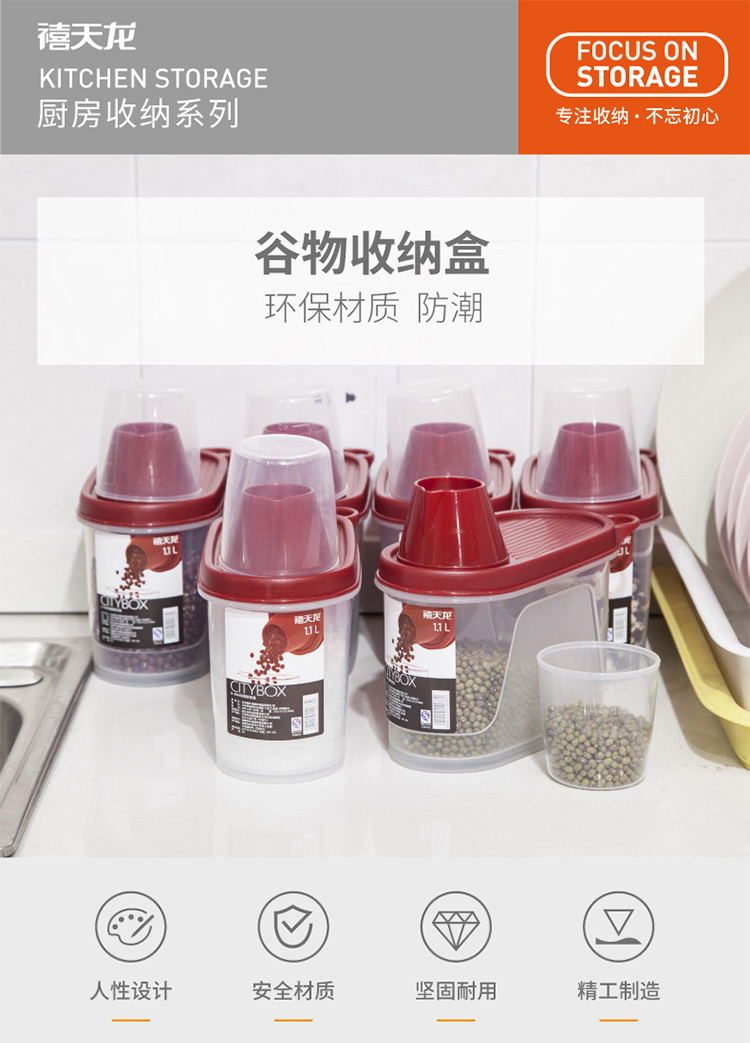 禧天龙杂粮密封盒H-4068三个装(单位:箱) 红色盖