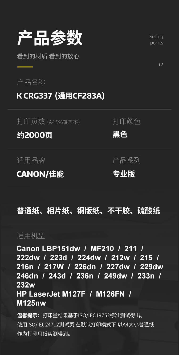 科思特 K CRG337 打印量2400页 适用Canon/MF216n/MF227dw/MF236n/LBP151dw 硒鼓 1.00 只/支 (计价单位:支) 黑色