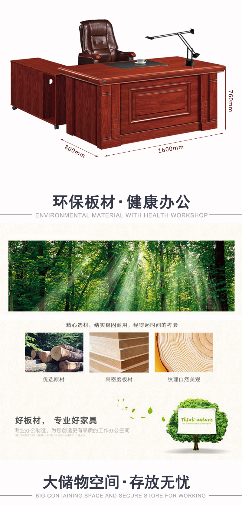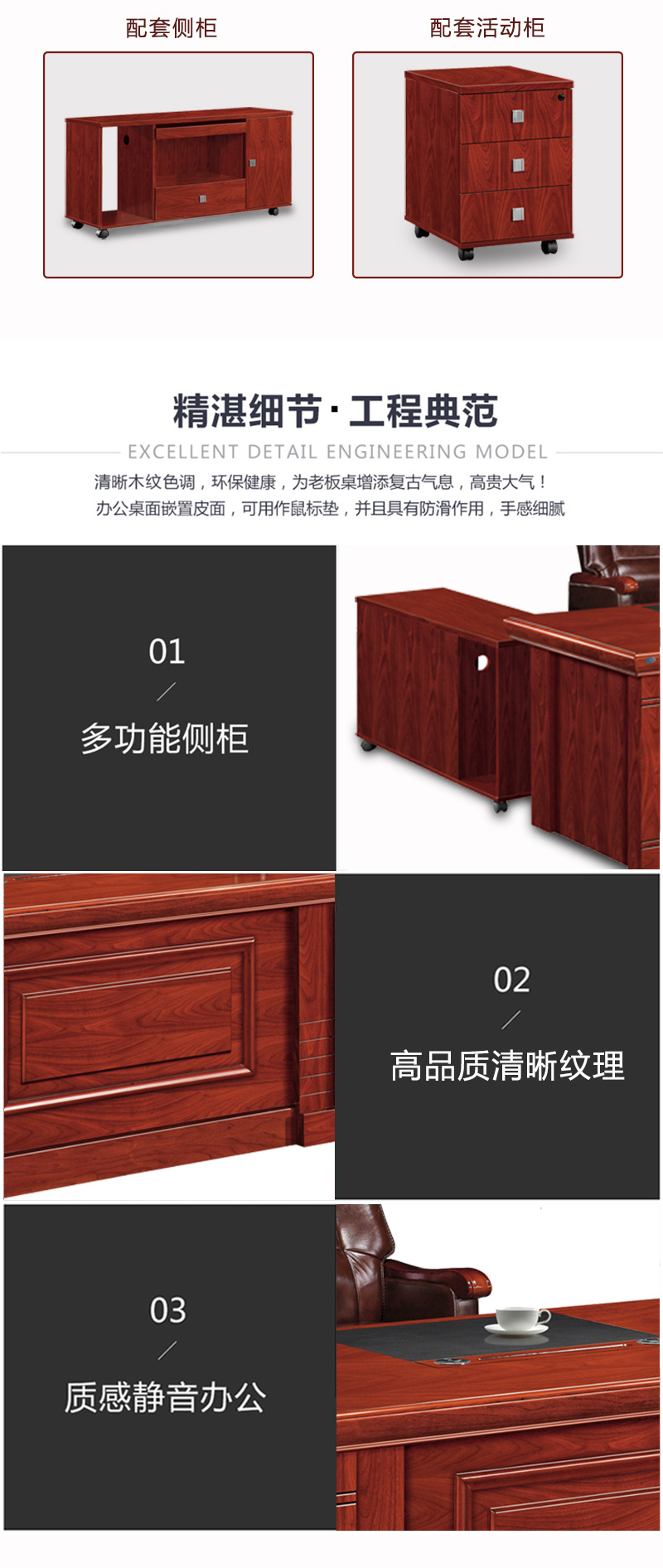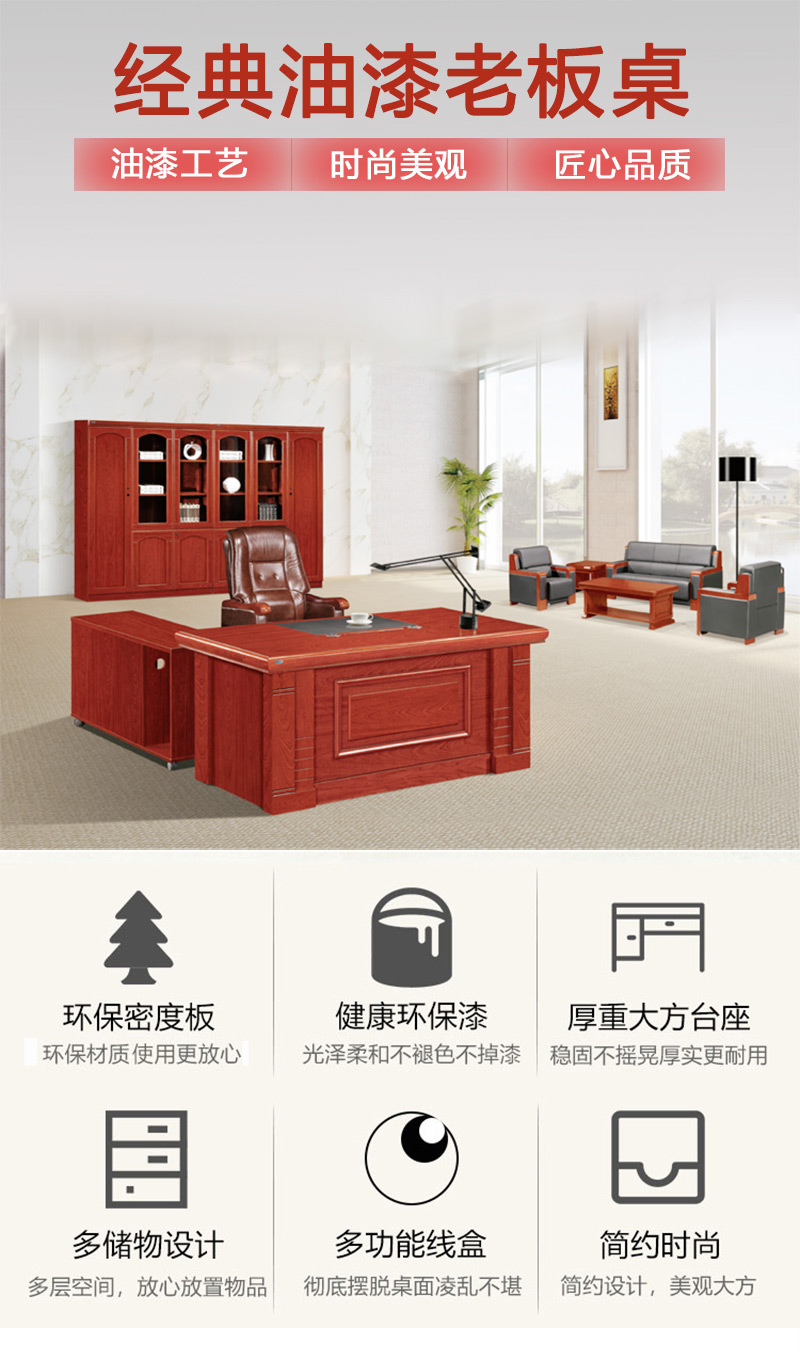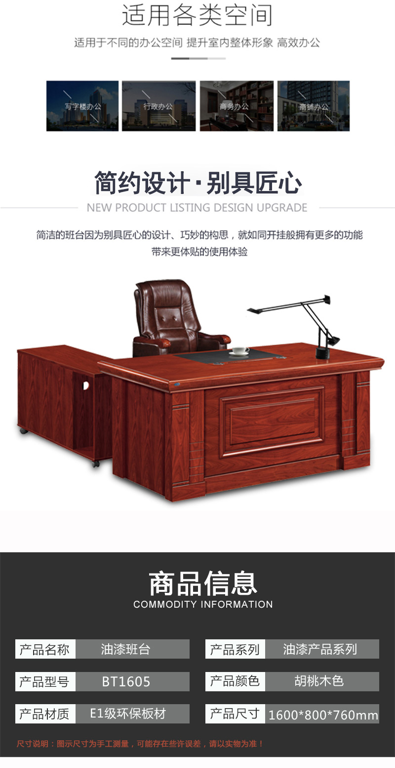 悦山 传统油漆班台主管桌办公桌1600*800*760*1张 胡桃木色
