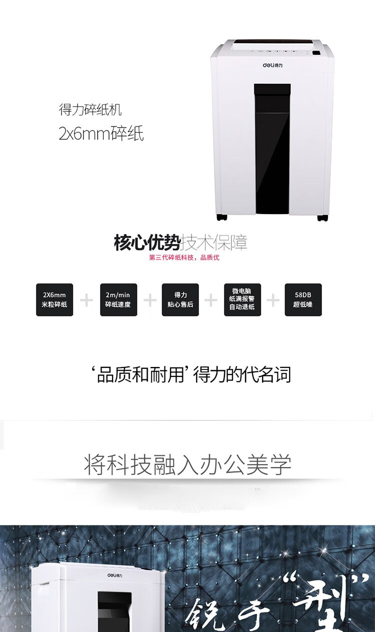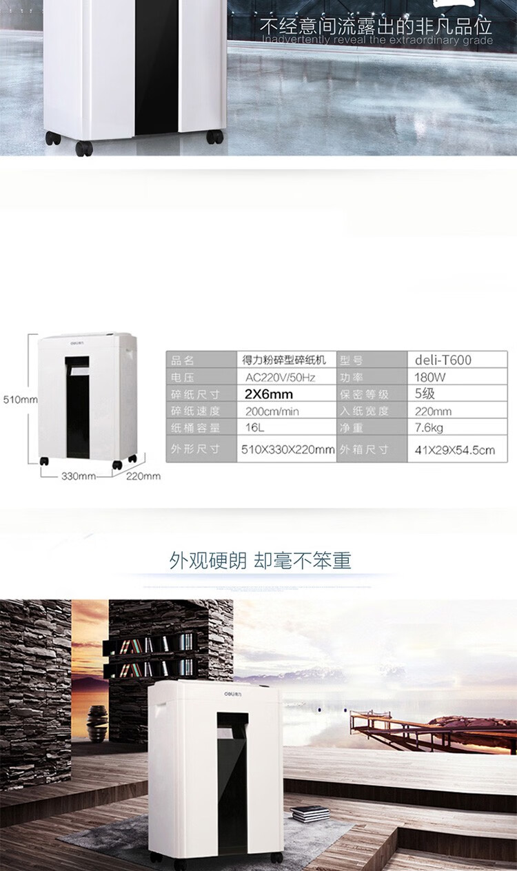 得力(deli)T600 5级保密办公碎纸机(单次6张 16L 持续10分钟 可碎卡) 灰色